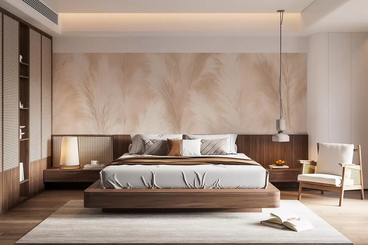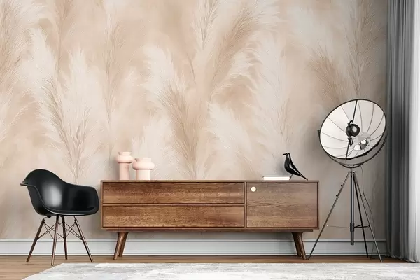 Pampas grass in beige and pink tones - Wall mural (No. w09077)