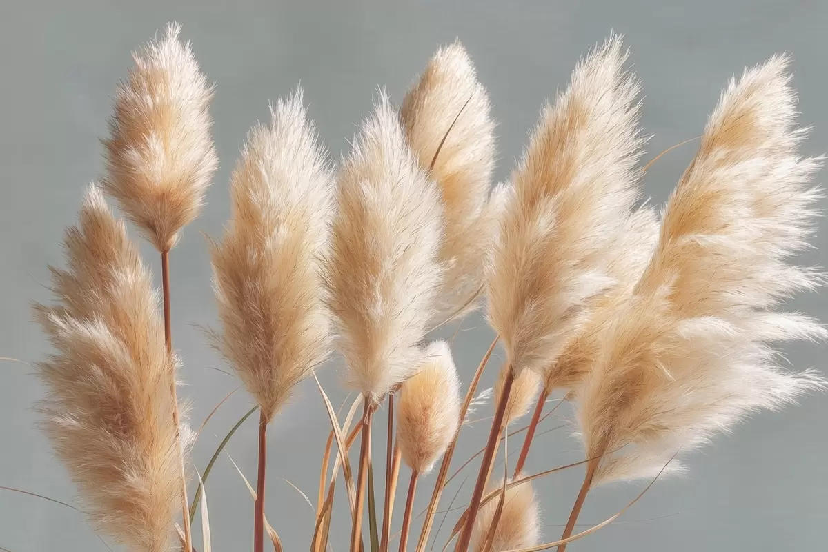 Beige pampas grass on a blue-gray background - Wall mural (No. w09083)