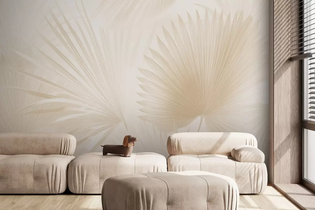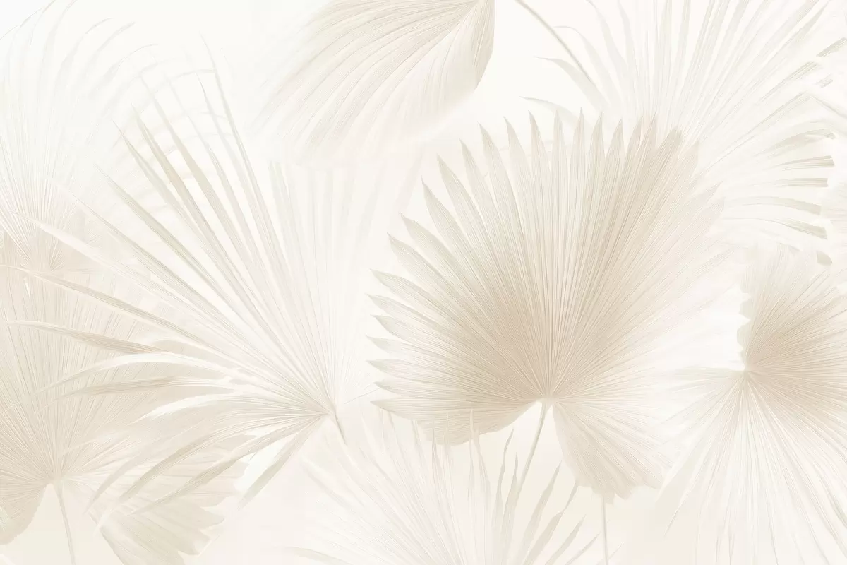 Soft tropical leaf fans on a light background - Wall mural (No. w09084v1)