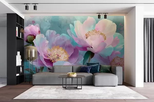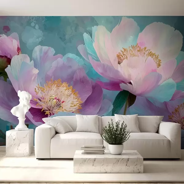 Colorful peonies in blue and purple shades - Wall mural (No. w09087)