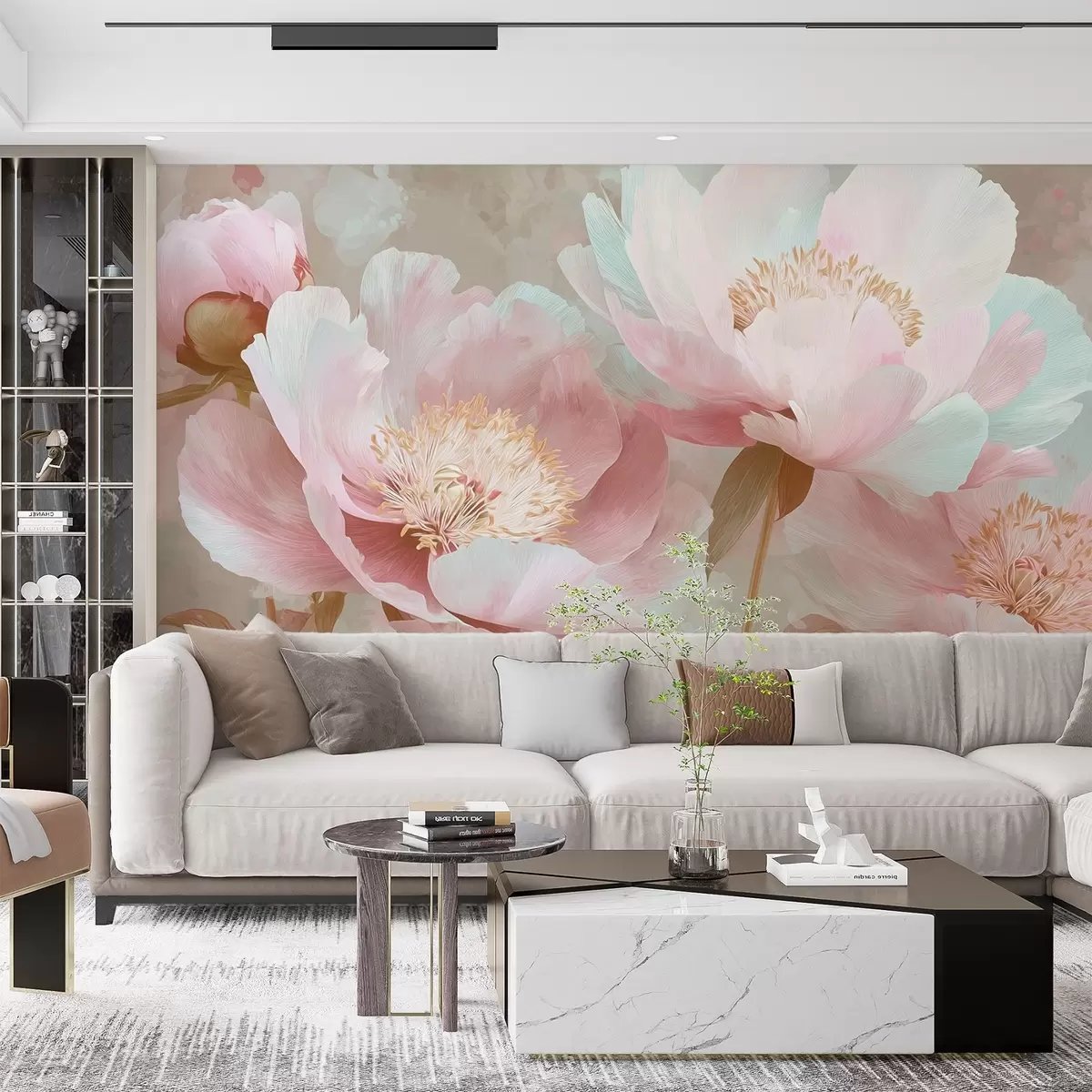 Delicate peonies in pink and beige tones - Wall mural (No. w09087v1)