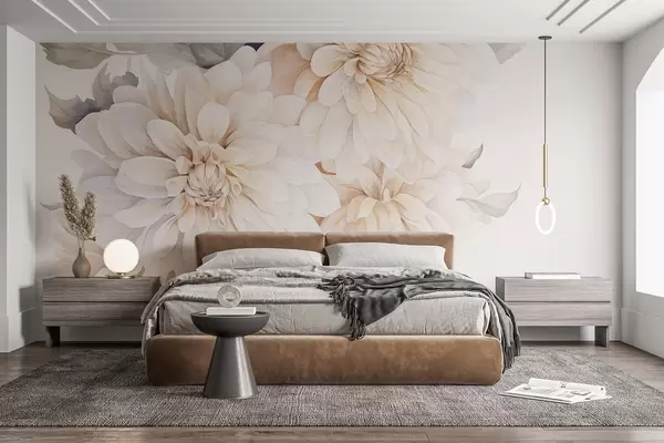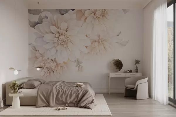Pastel dahlias with soft, delicate peach and white light petals in watercolor style, soft background - Wall mural (No. w09115)