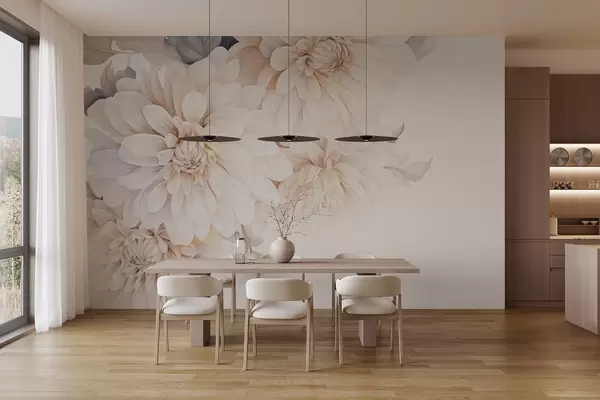 Pastel dahlias with soft, delicate peach and white light petals in watercolor style, soft background - Wall mural (No. w09115)