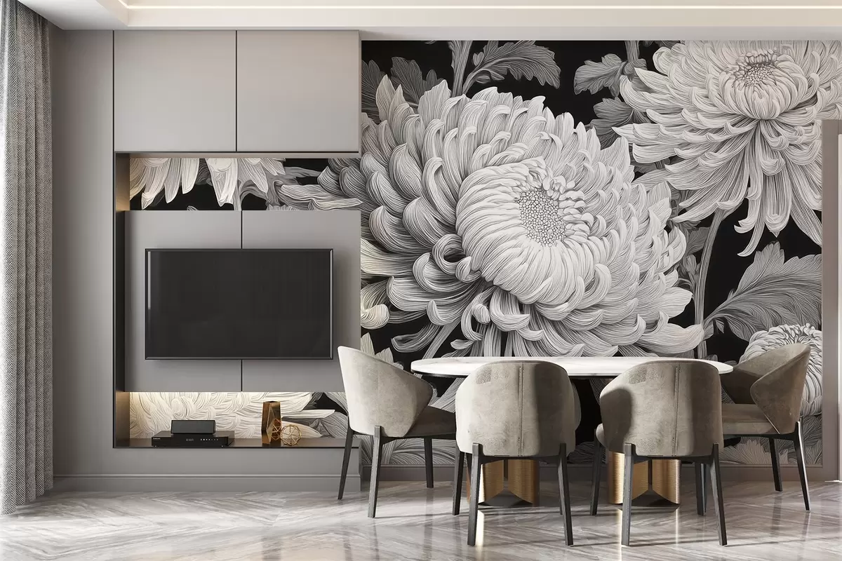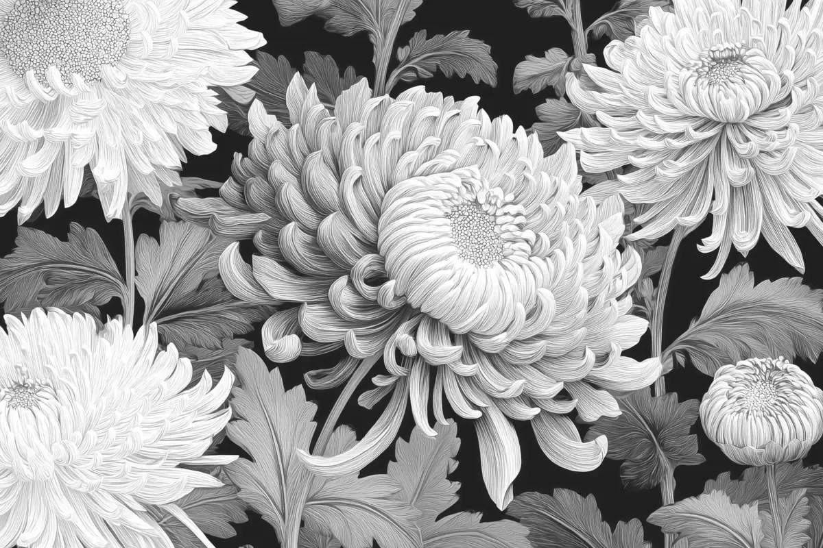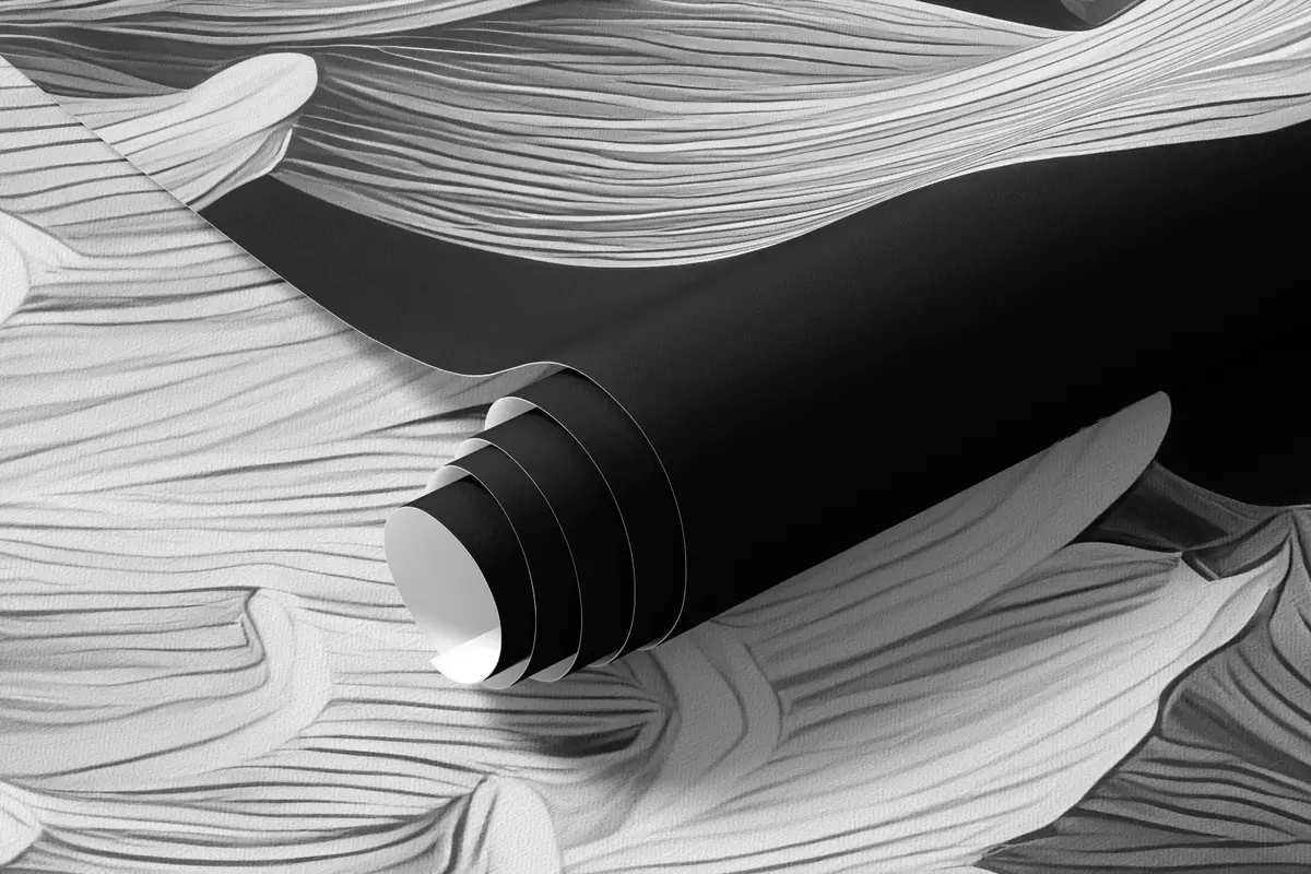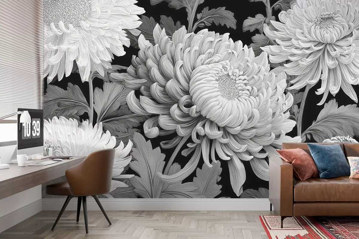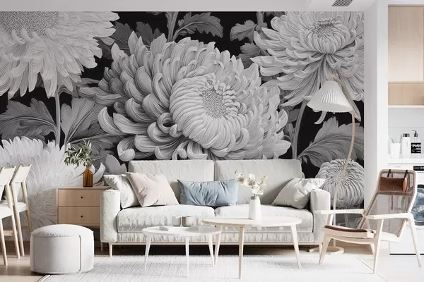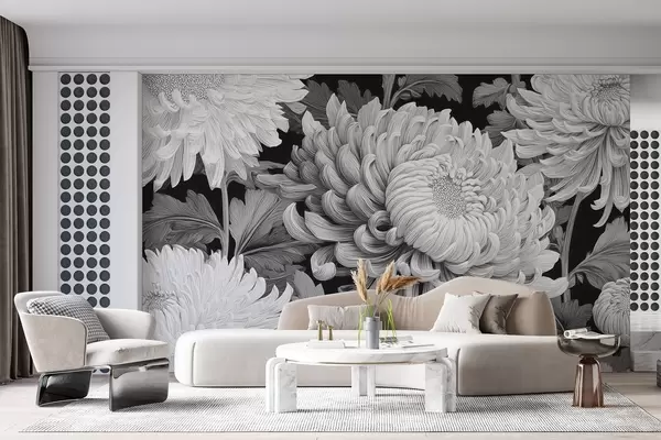 Black and white large orchids with leaves - Wall mural (No. w09125v1)