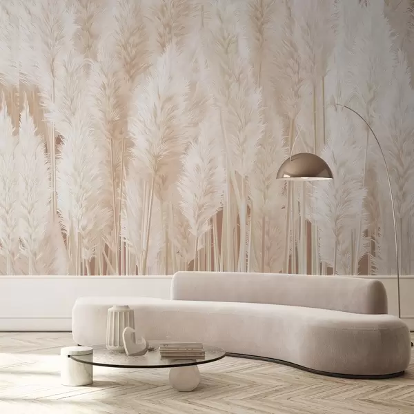 Pampas grass in beige tones - Wall mural (No. w09126)