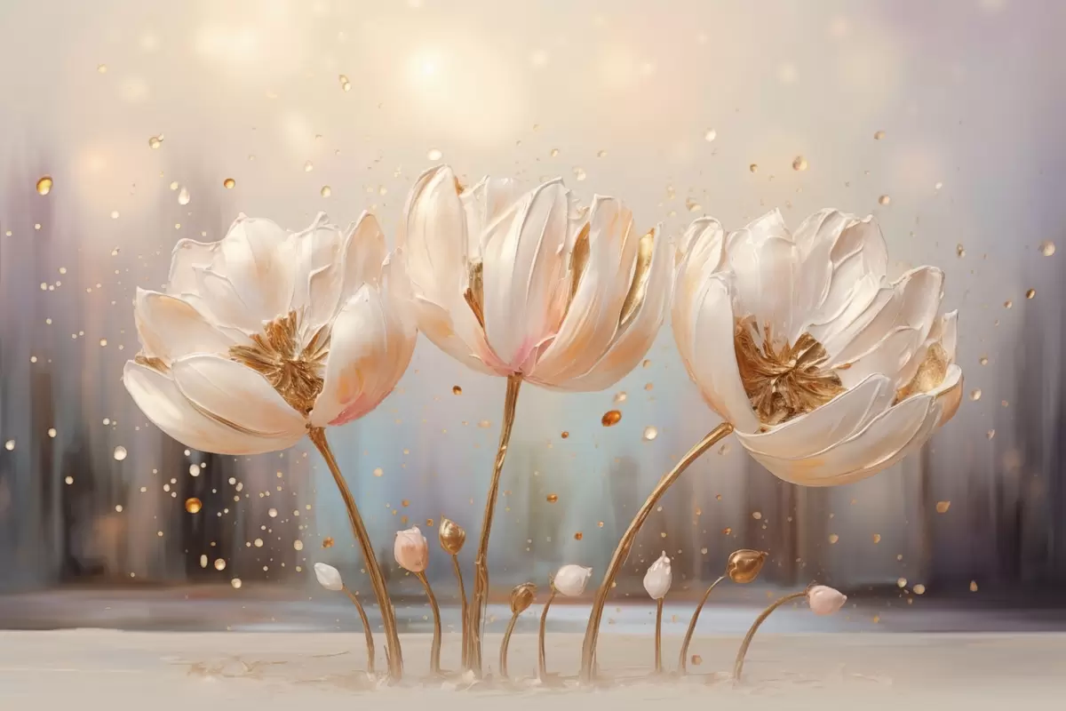 Delicate voluminous flowers at sunrise - Wall mural (No. w09148)