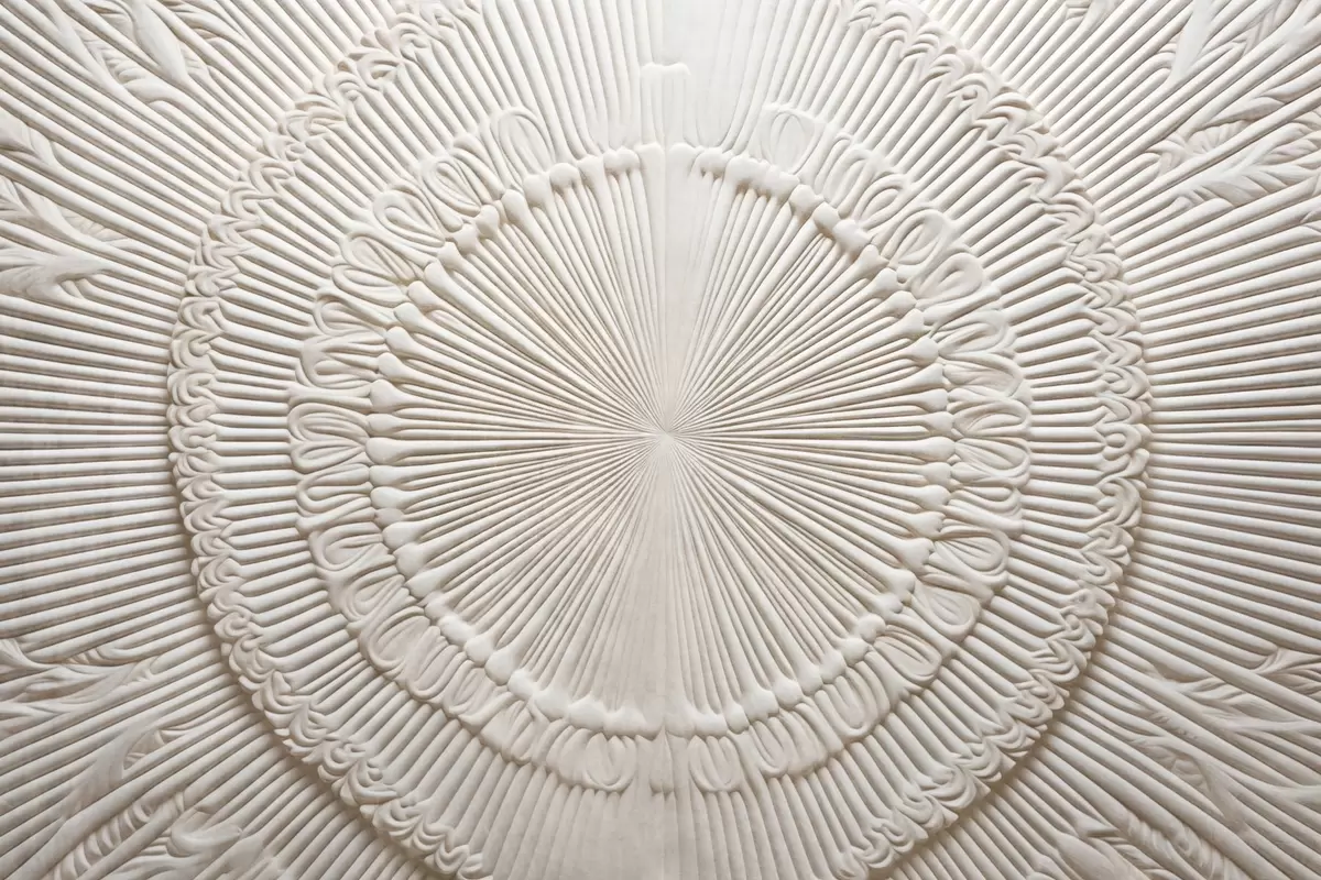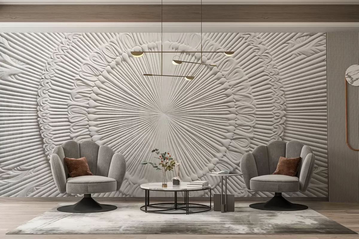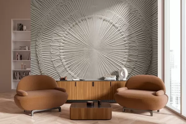 Abstract textured circular print with radial lines and decorative elements, symmetrical design, relief texture - Wall mural (No. w09154)