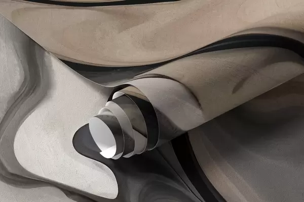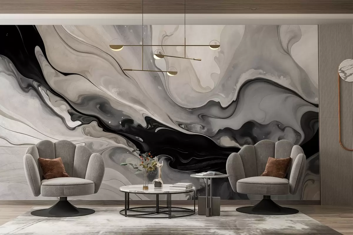 Abstract fluid textured painting in shades of black, white, gray, and beige marble imitation - Wall mural (No. w09160)