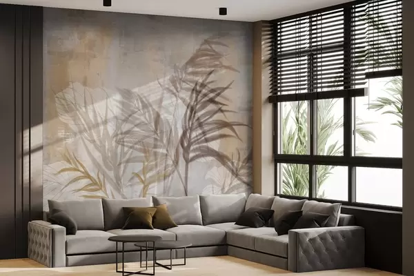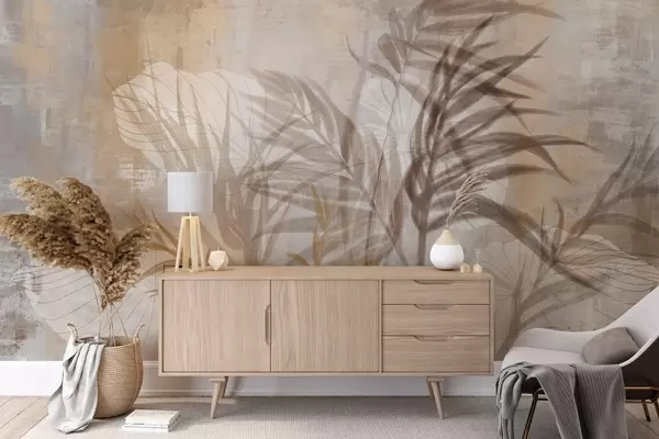 Beige and brown botanical illustration of pampas grass, soft textures, and a minimalist composition - Wall mural (No. w09162)