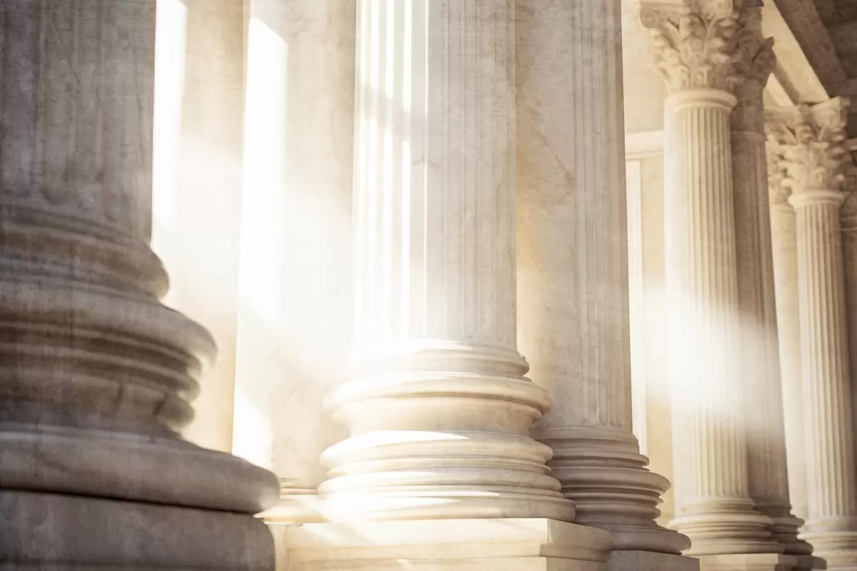 Columns, classic architecture, elegant design, textured symmetrical composition, neutral color palette - Wall mural (No. w09209)