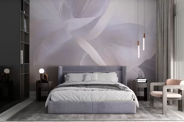 Abstract textured flower with delicate petals, soft lighting, elegant composition, minimalist aesthetic - Wall mural (No. w09211)