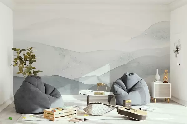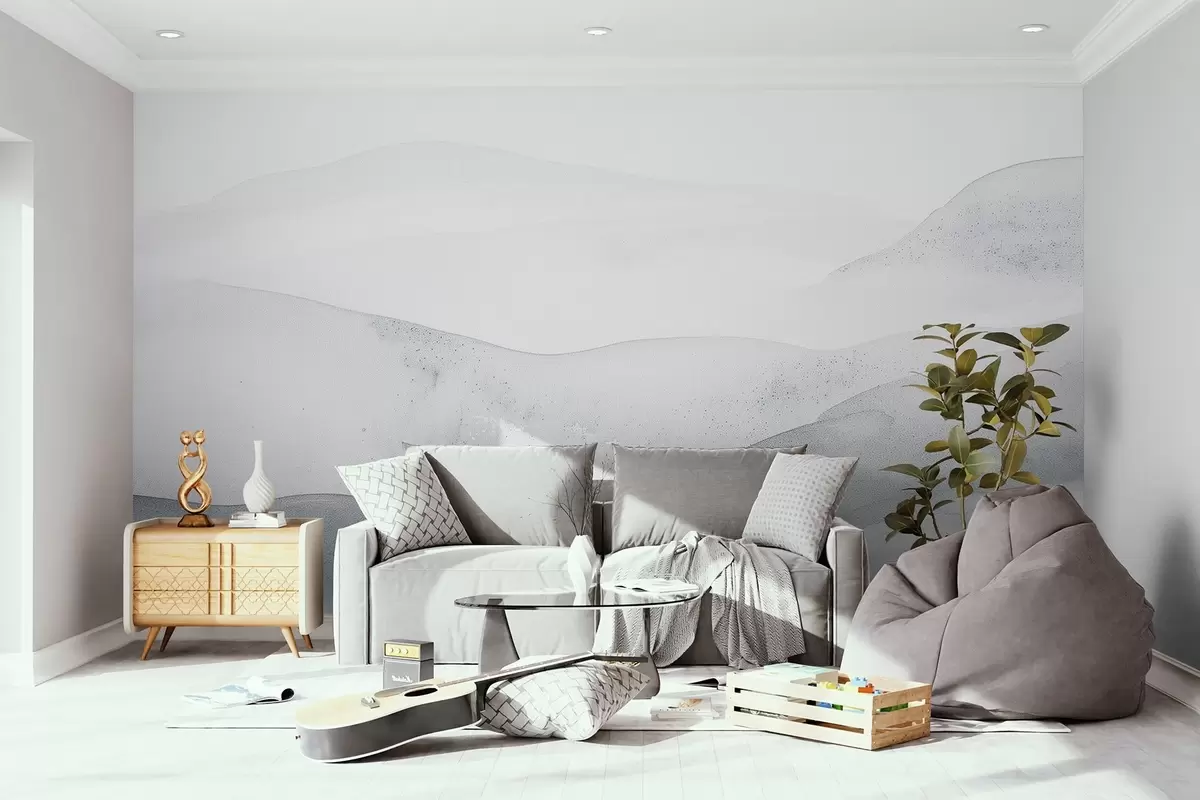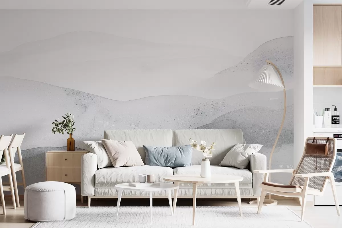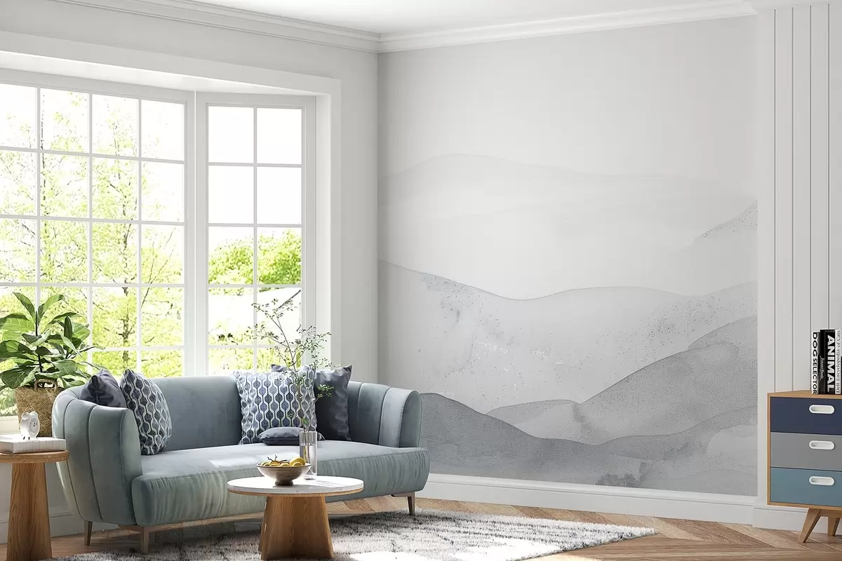 Minimalist misty mountains in soft blue shades - Wall mural (No. w09223v2)