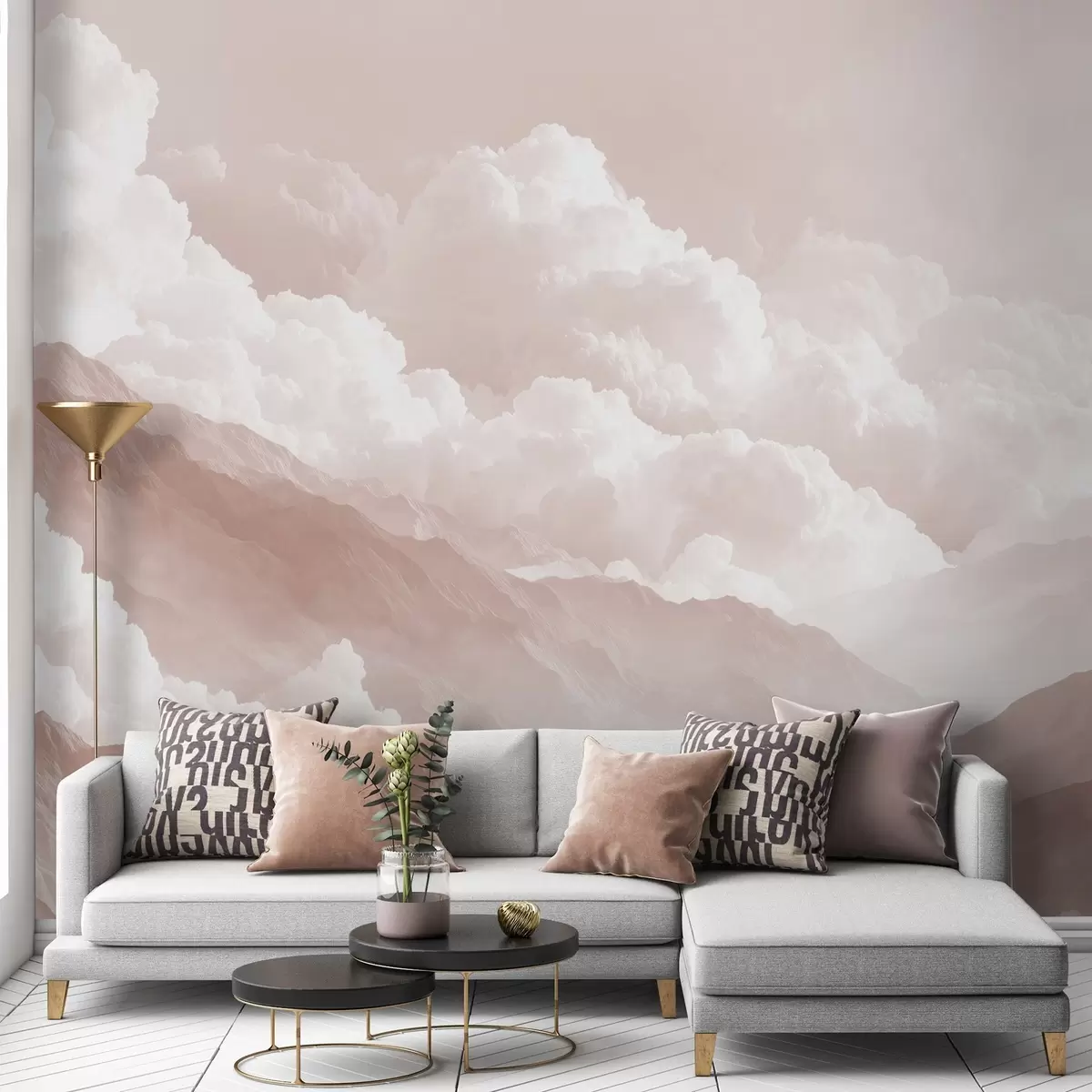 Soft mountain landscape in light powdery tones - Wall mural (No. w09226v1)