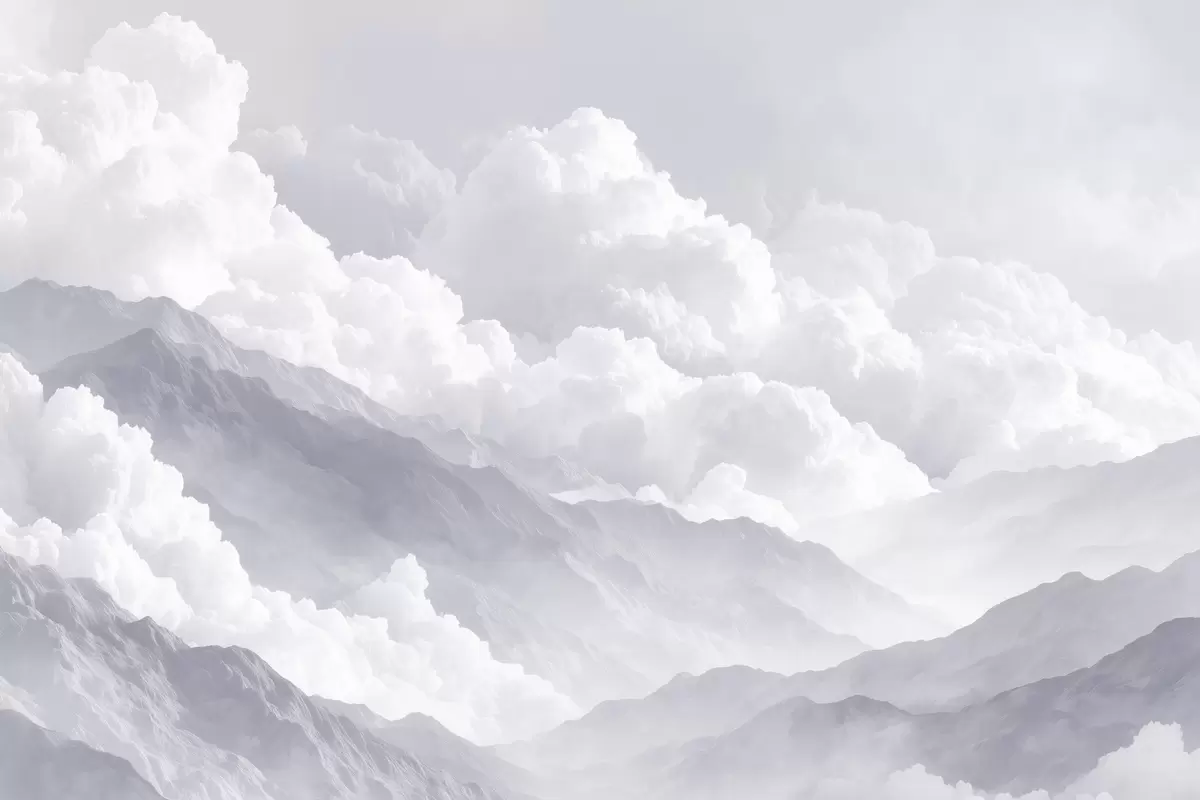 Soft clouds over mountains in blue tones - Wall mural (No. w09226v2)