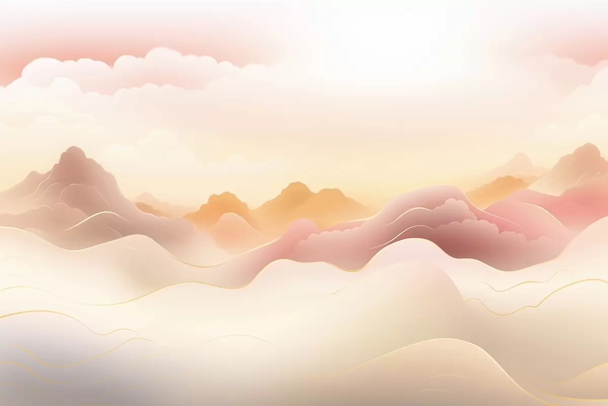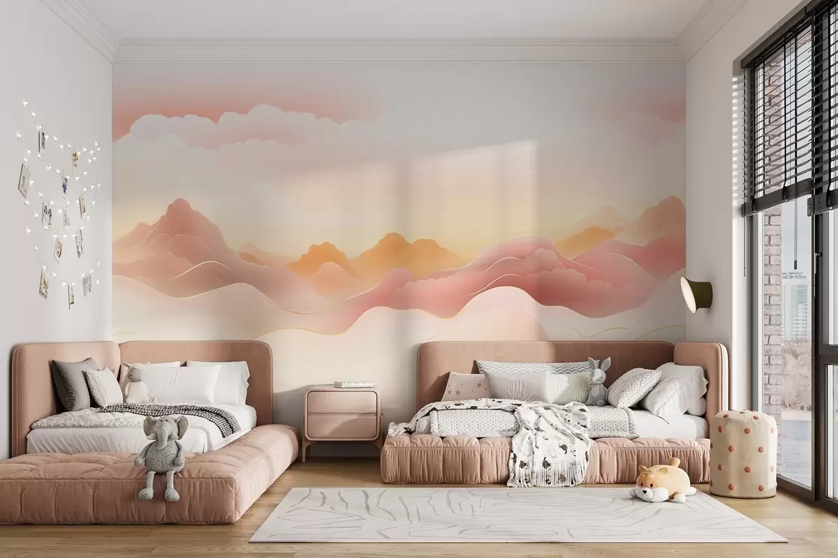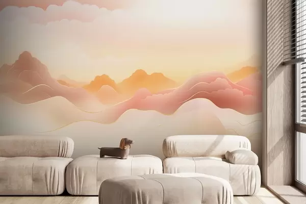 Misty mountains under a warm sunrise - Wall mural (No. w09242)