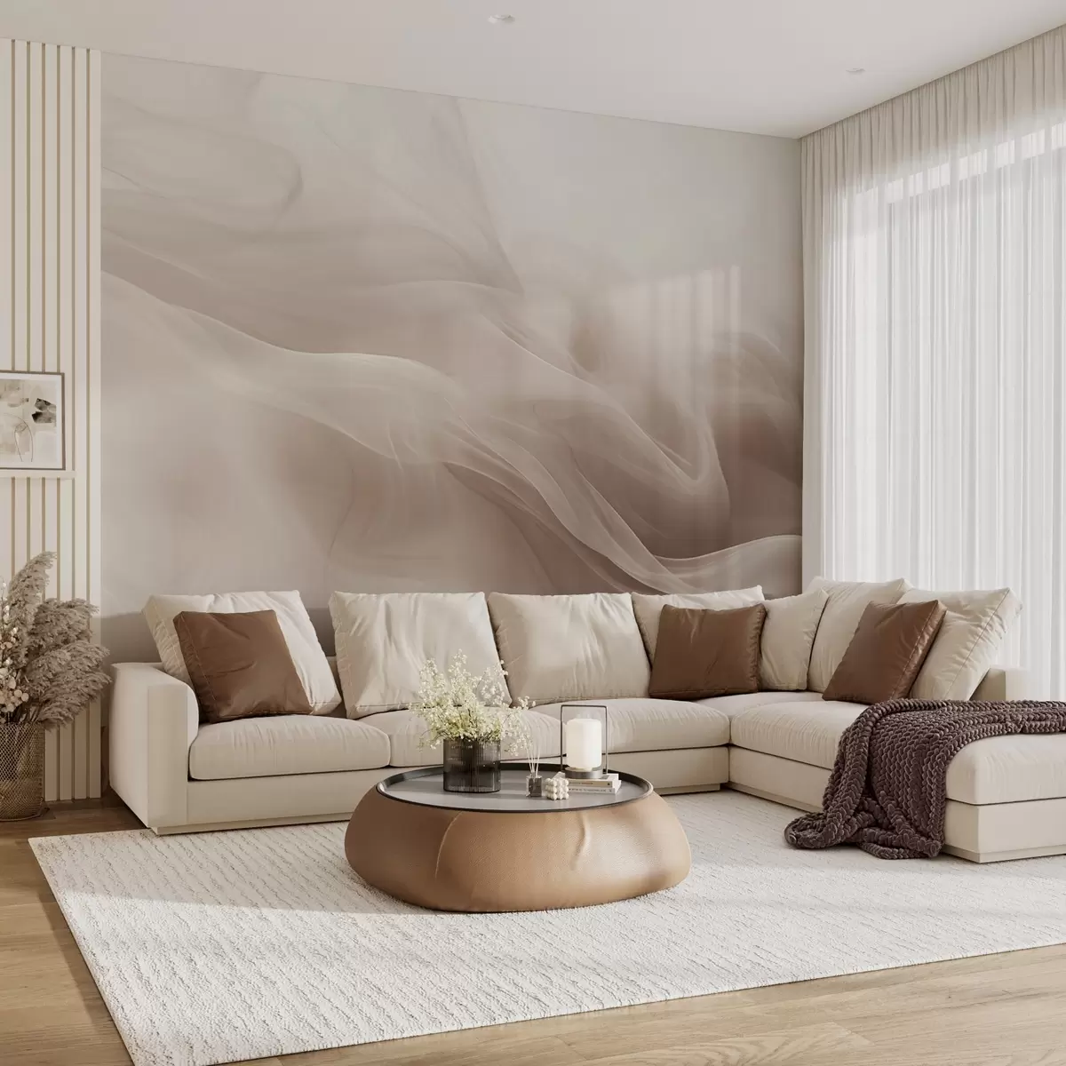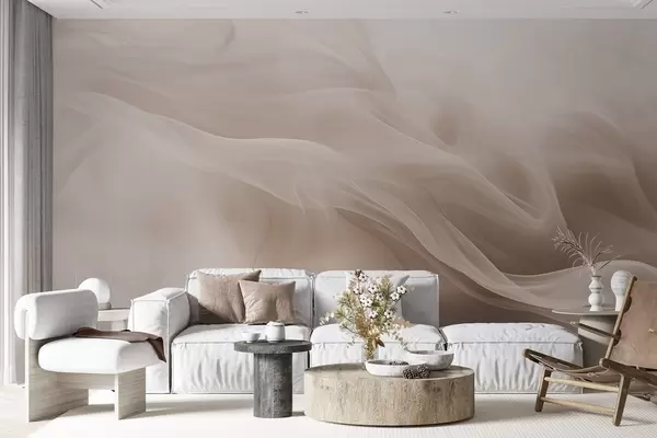 Soft beige smoky waves in abstract style - Wall mural (No. w09273v1)