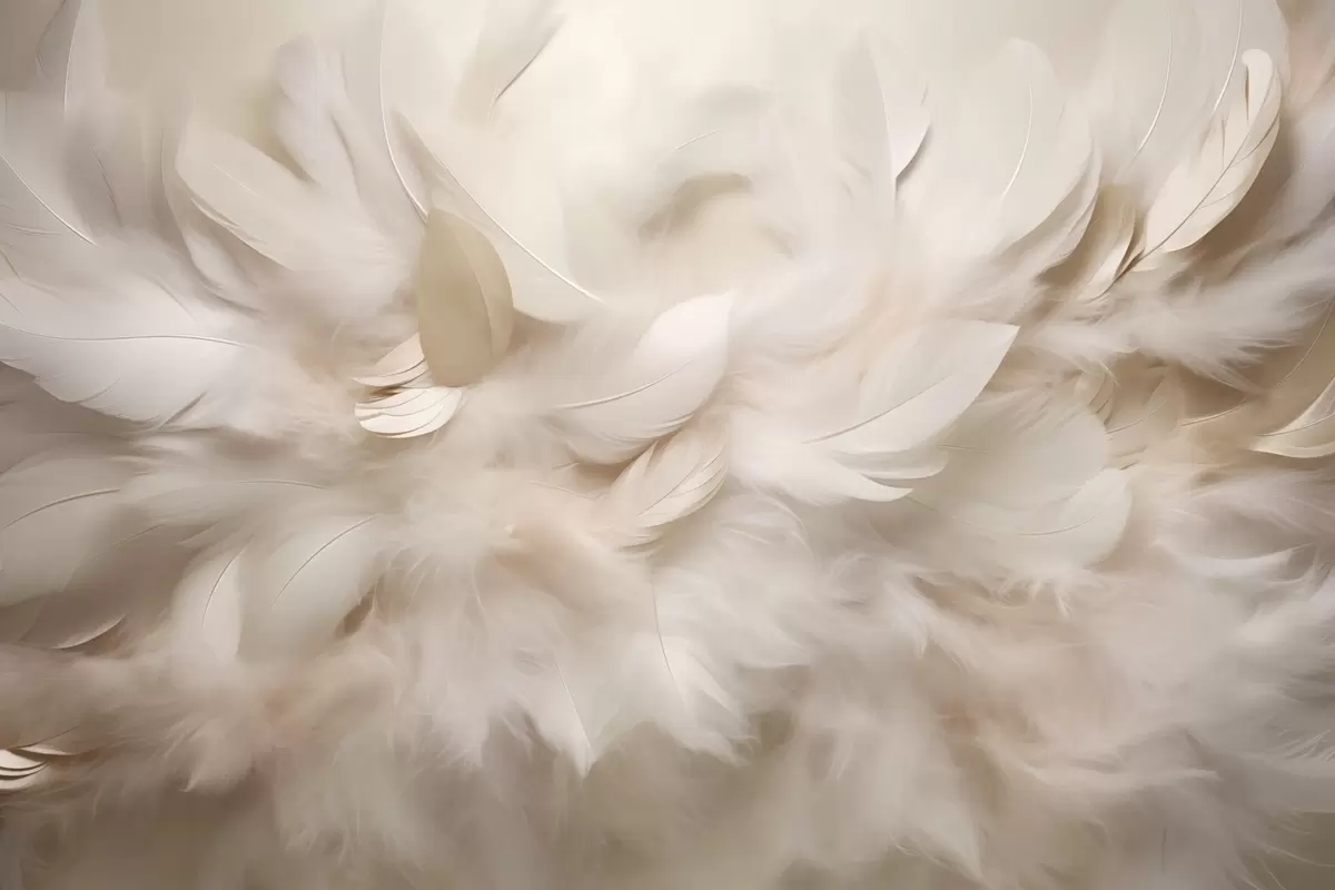 Fluffy feathers and down in creamy shades - Wall mural (No. w09274)