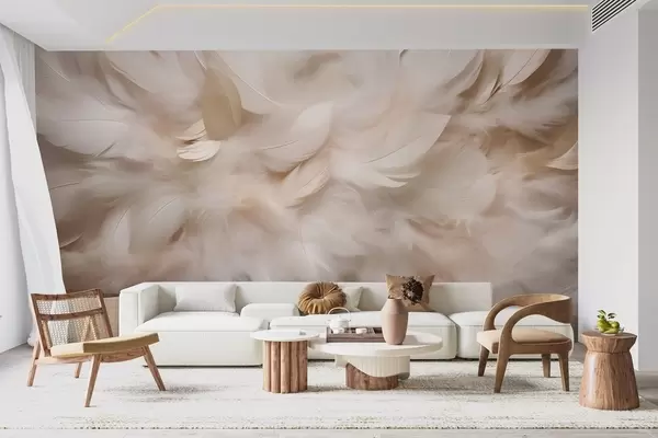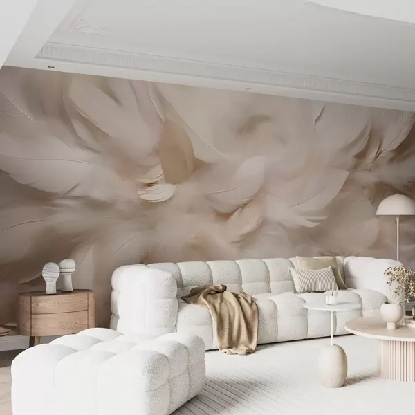 Fluffy feathers and down in creamy shades - Wall mural (No. w09274)