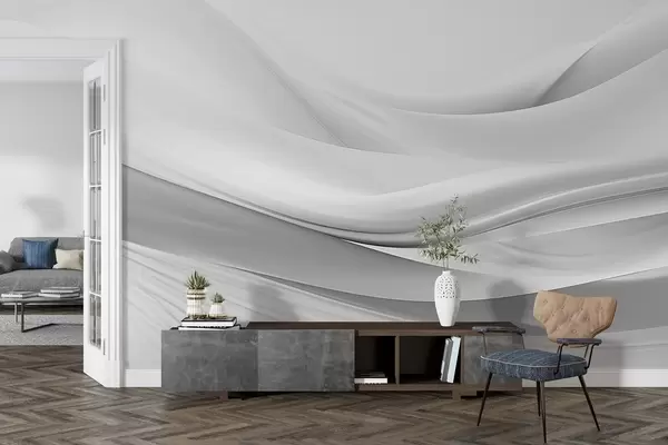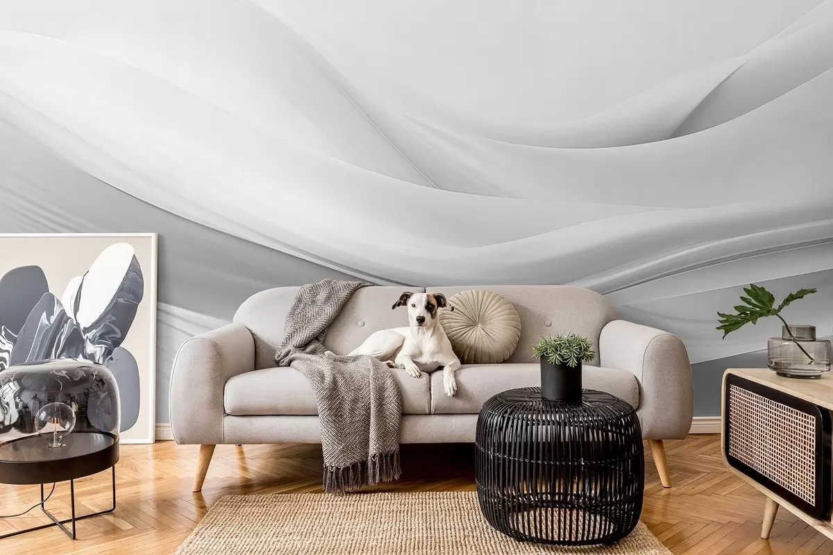Gray fabric waves in minimalist abstract style - Wall mural (No. w09279v1)