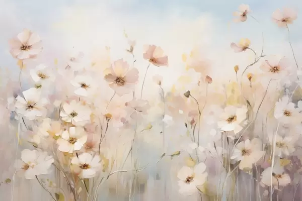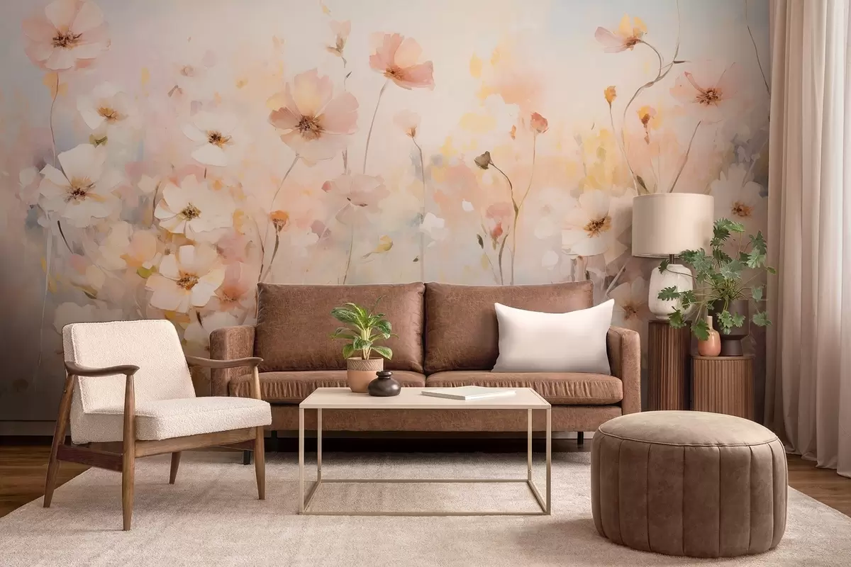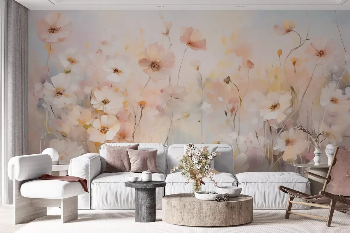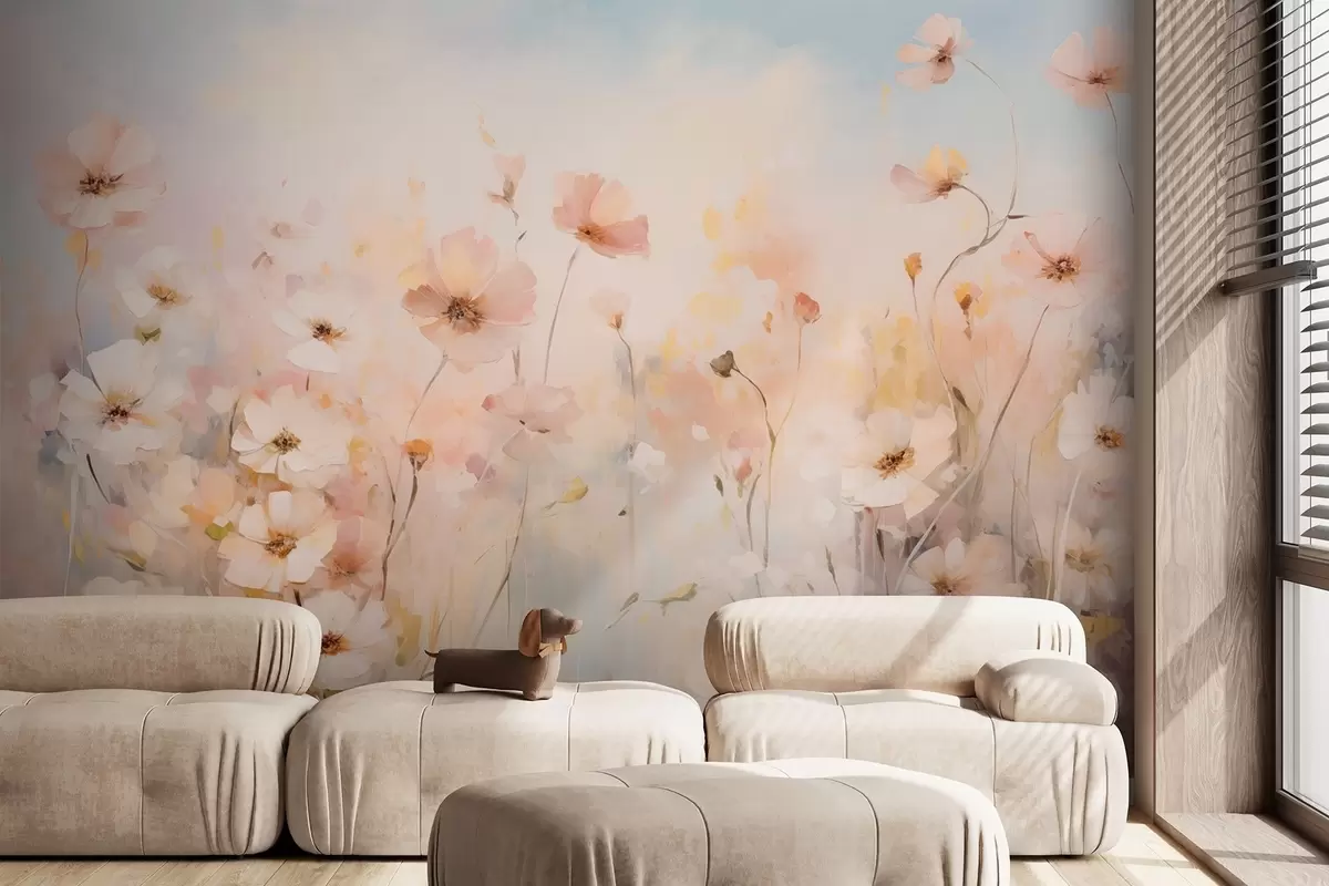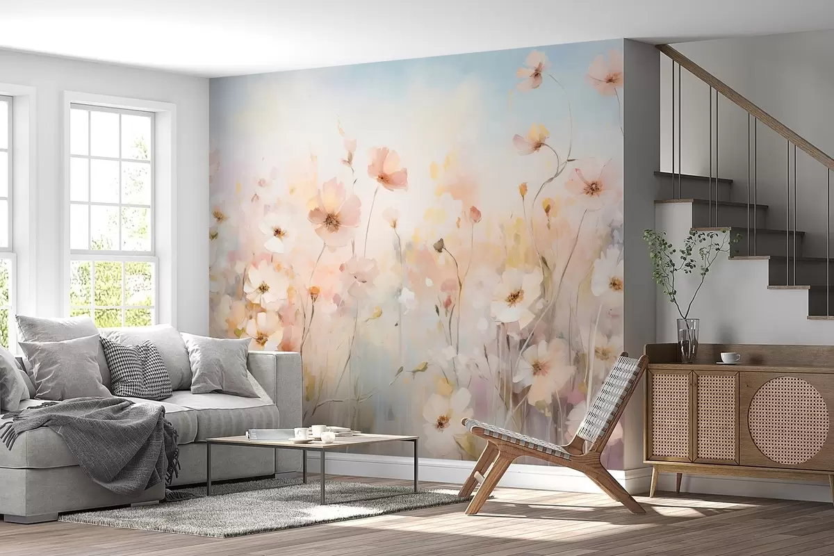 Wildflowers in pastel shades in watercolor style - Wall mural (No. w09280)