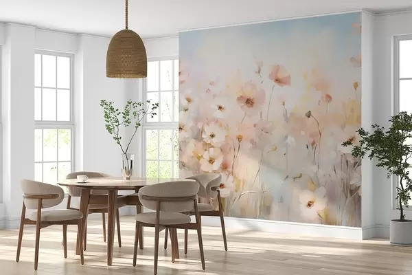 Wildflowers in pastel shades in watercolor style - Wall mural (No. w09280)