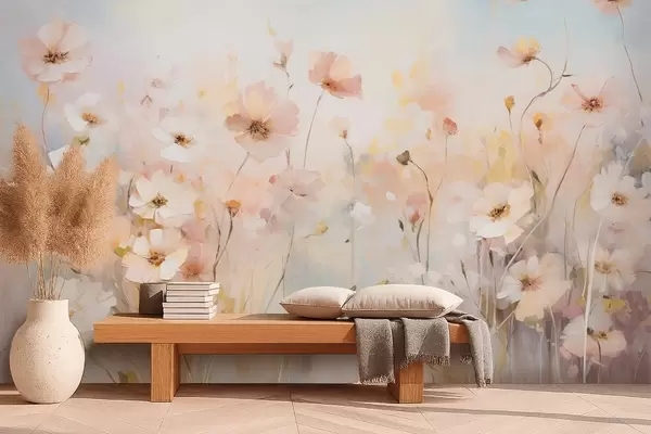 Wildflowers in pastel shades in watercolor style - Wall mural (No. w09280)