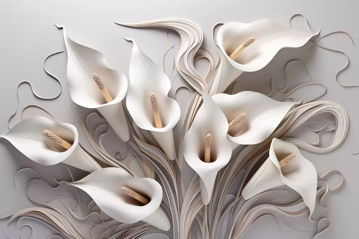 Volumetric calla lilies in creamy tones with 3D effect - Wall mural (No. w09281)