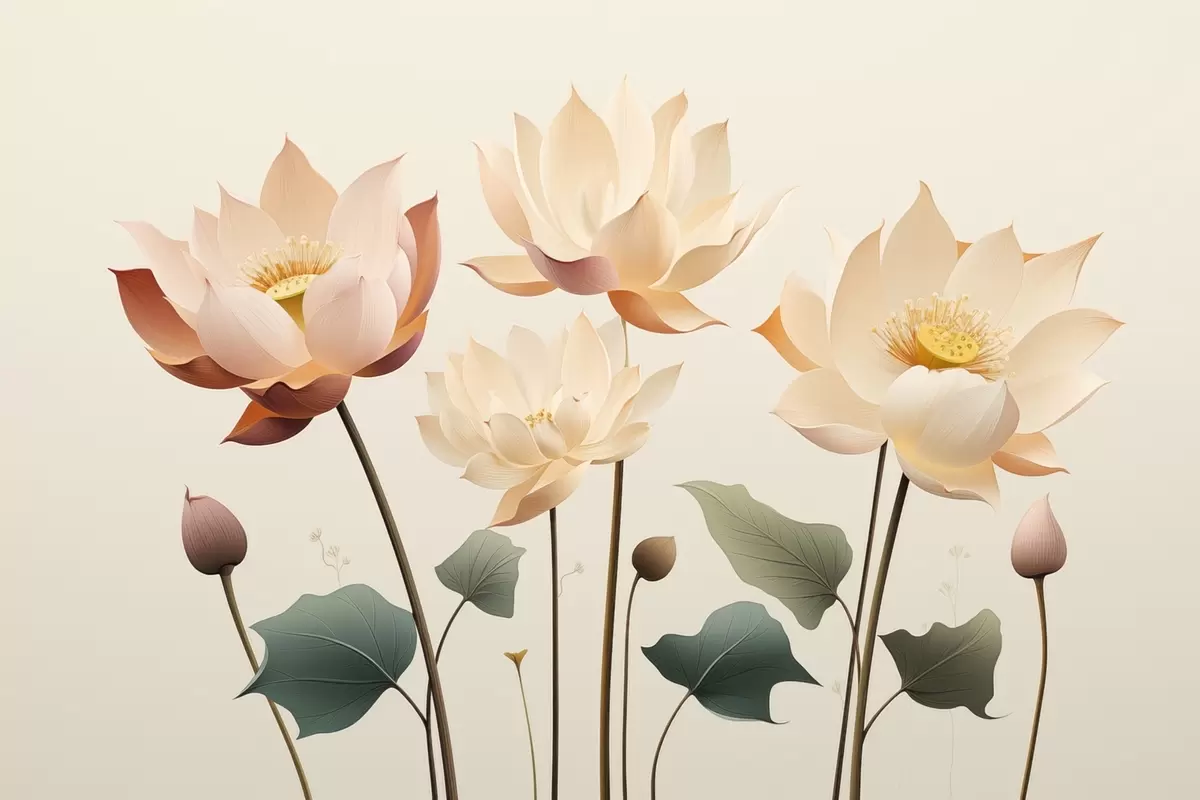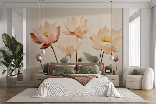 Elegant lotus flowers in a gentle pastel palette - Wall mural (No. w09306)