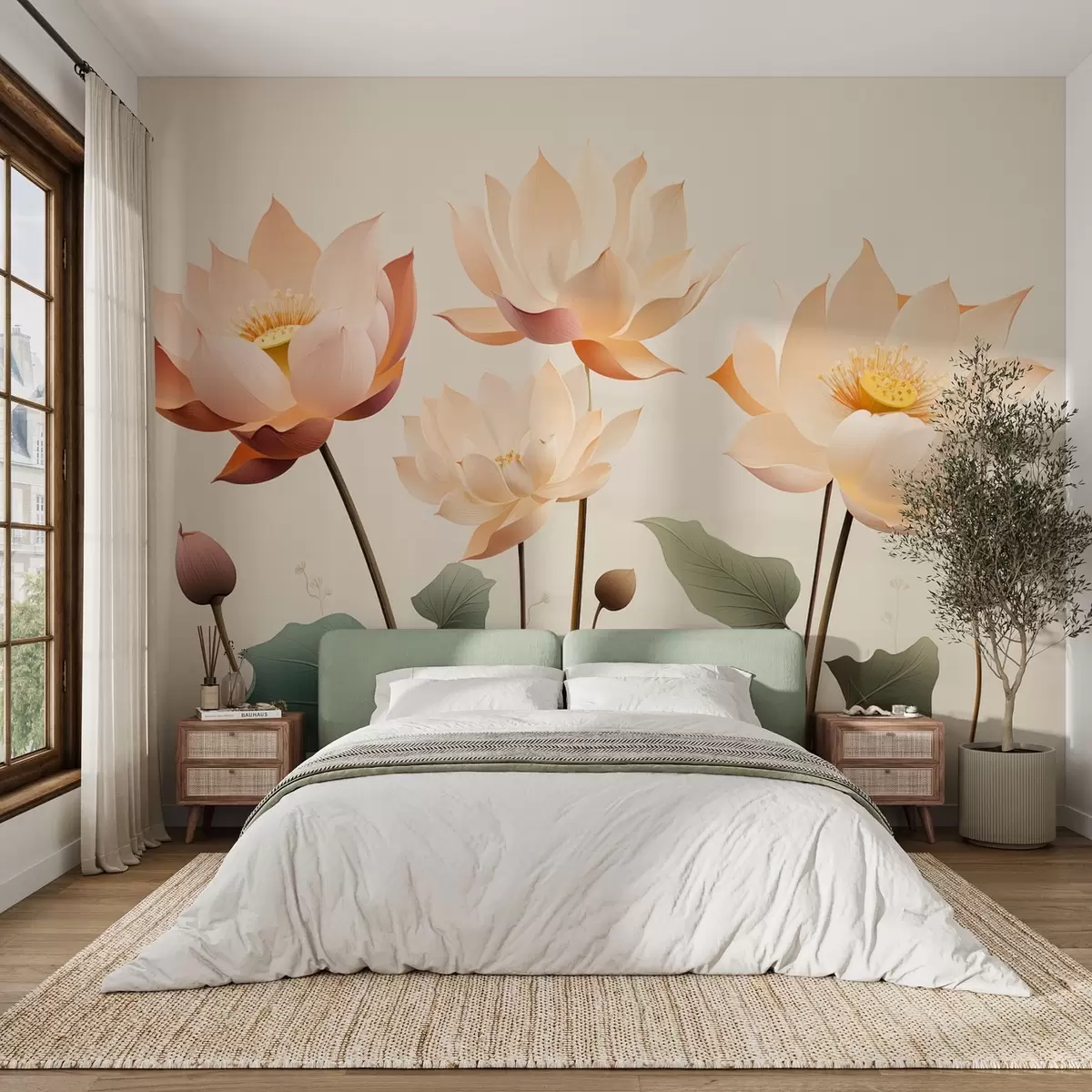 Elegant lotus flowers in a gentle pastel palette - Wall mural (No. w09306)