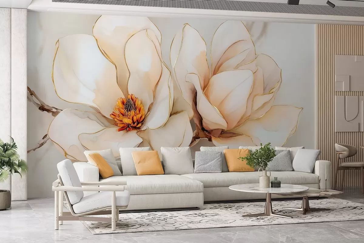 Large light magnolia flowers with soft petals - Wall mural (No. w09308)