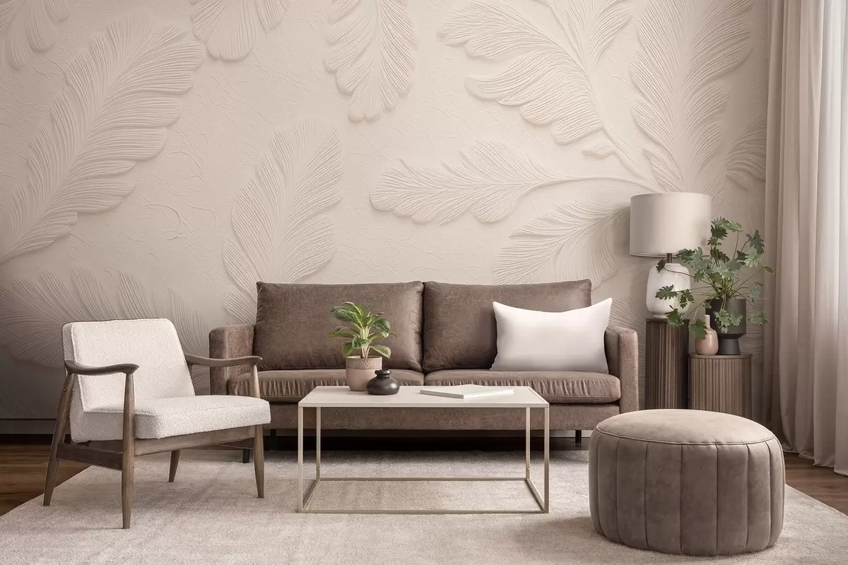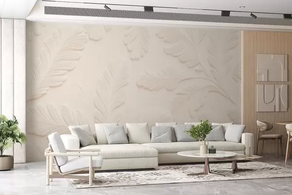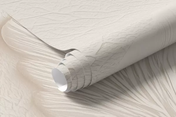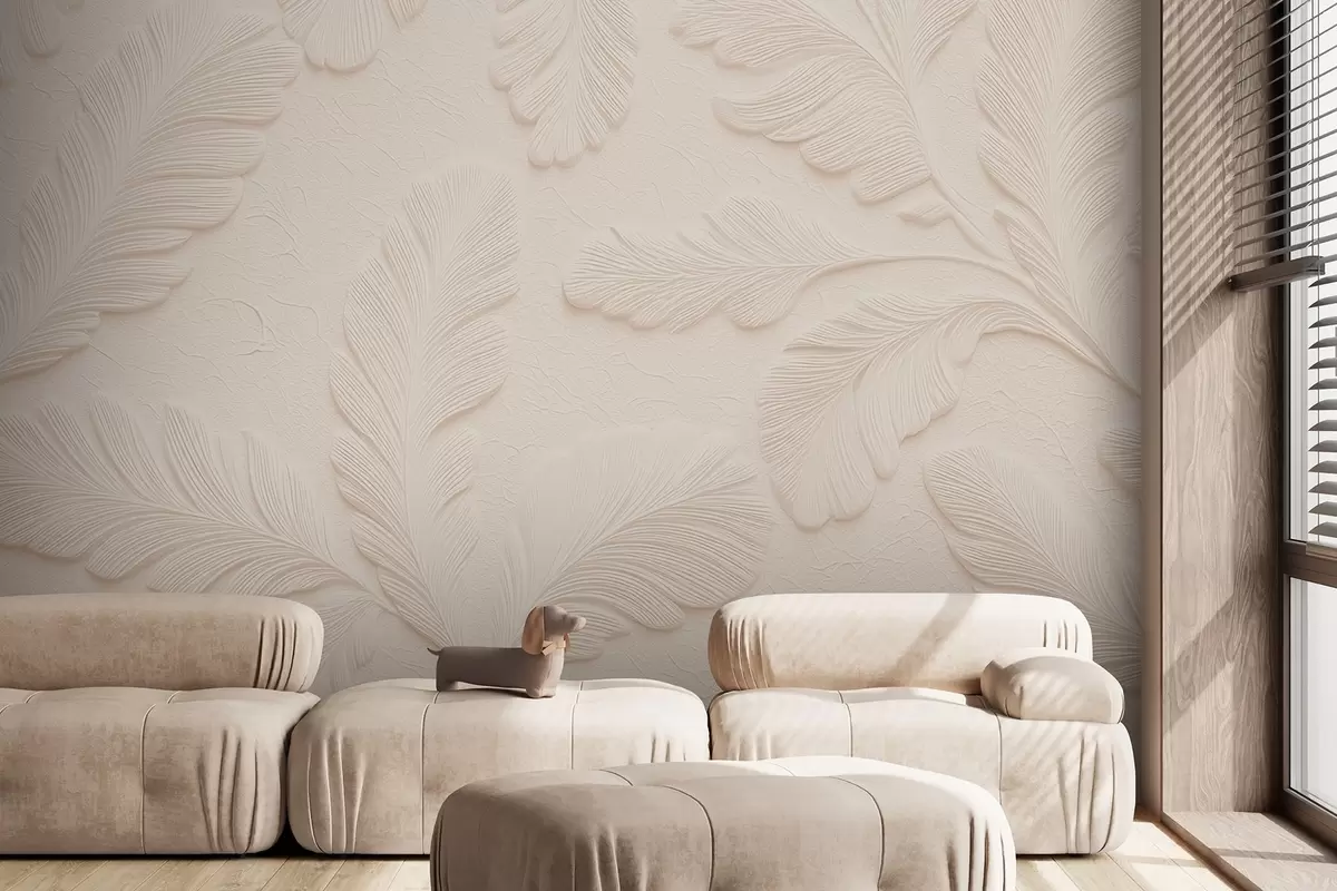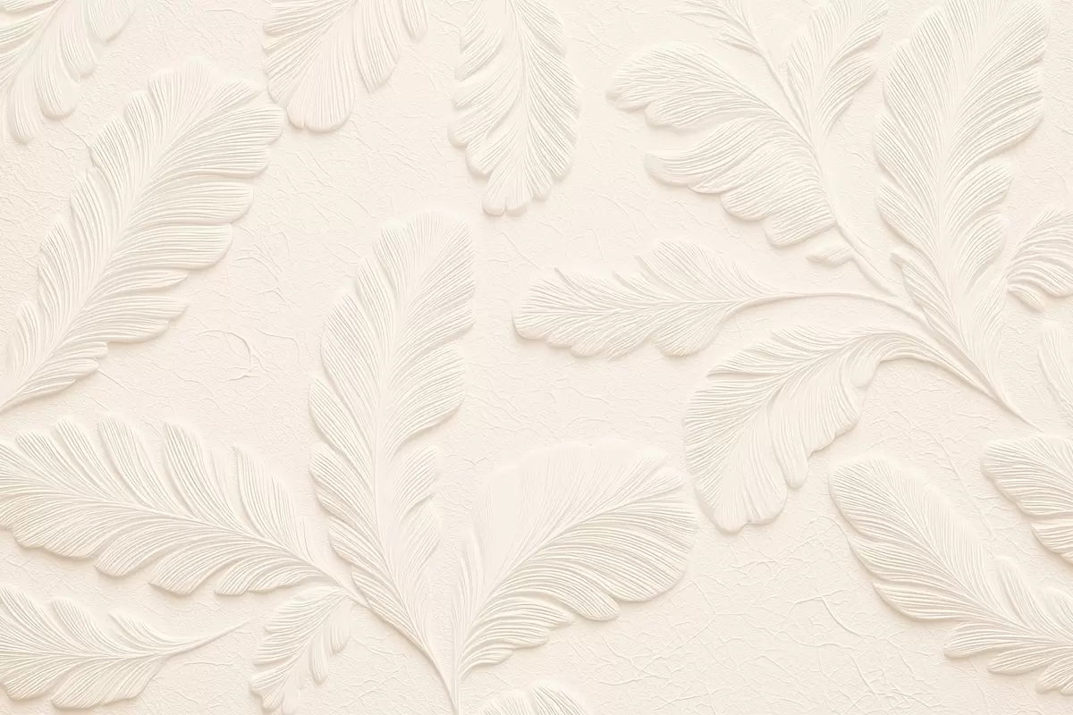 Embossed leaves on a light background with a cracked effect - Wall mural (No. w09309)