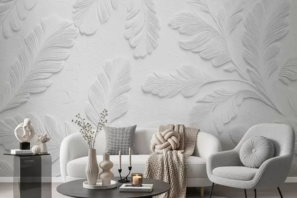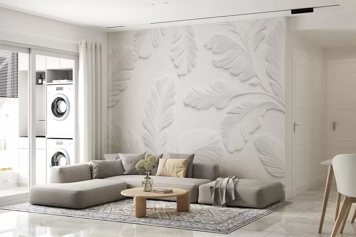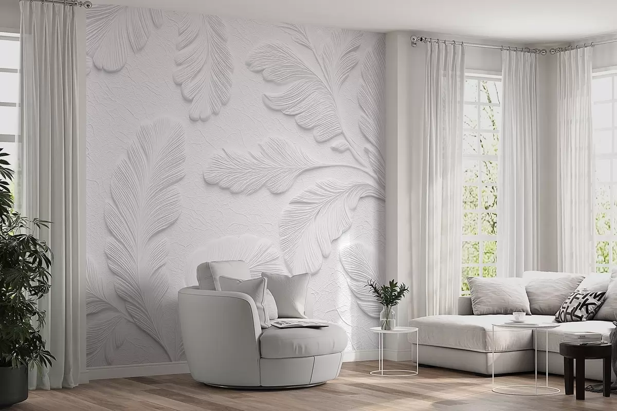 Relief leaves in grey with a cracked texture effect - Wall mural (No. w09309v1)