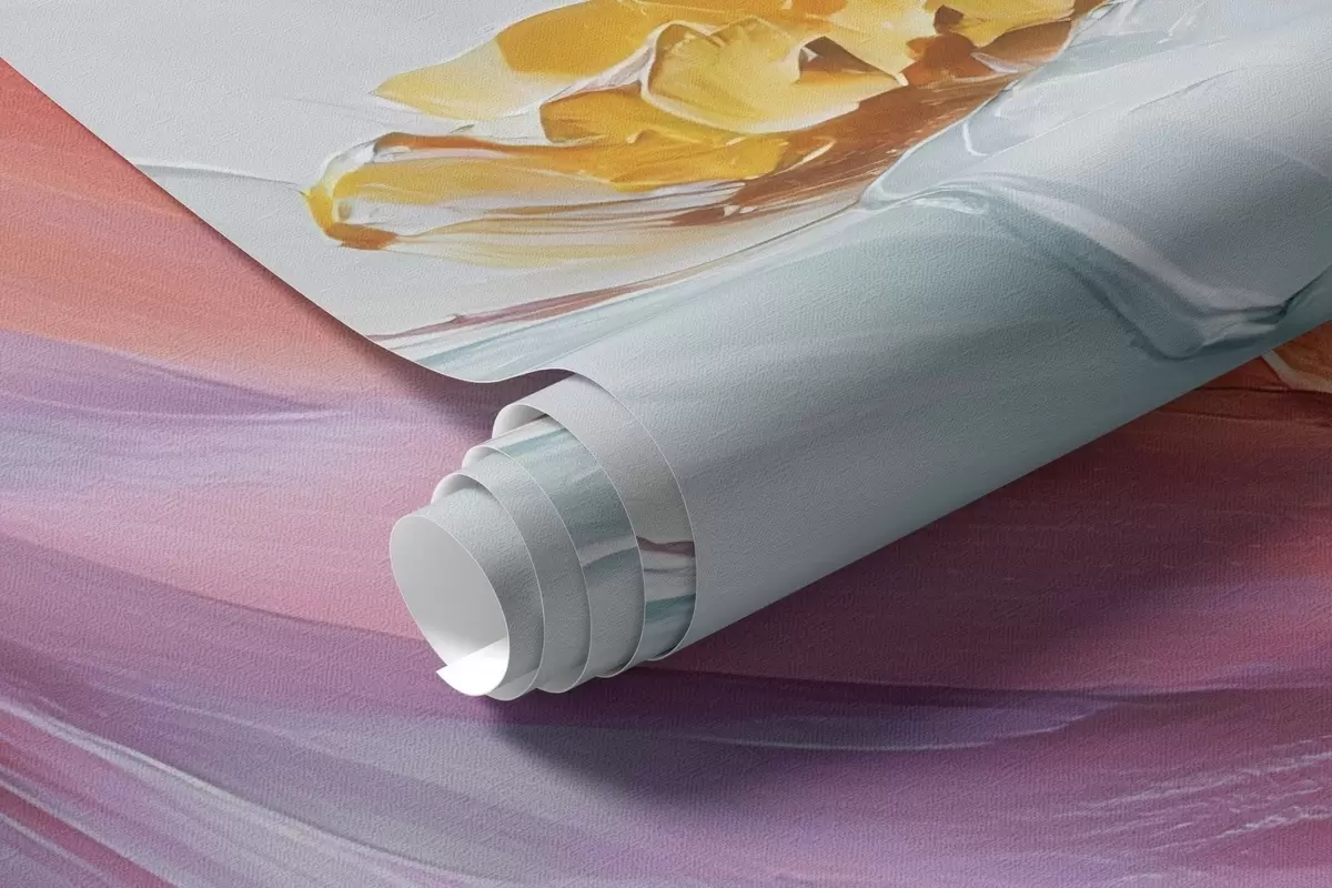 Bright flowers in oil painting technique on a blue background - Wall mural (No. w09310)