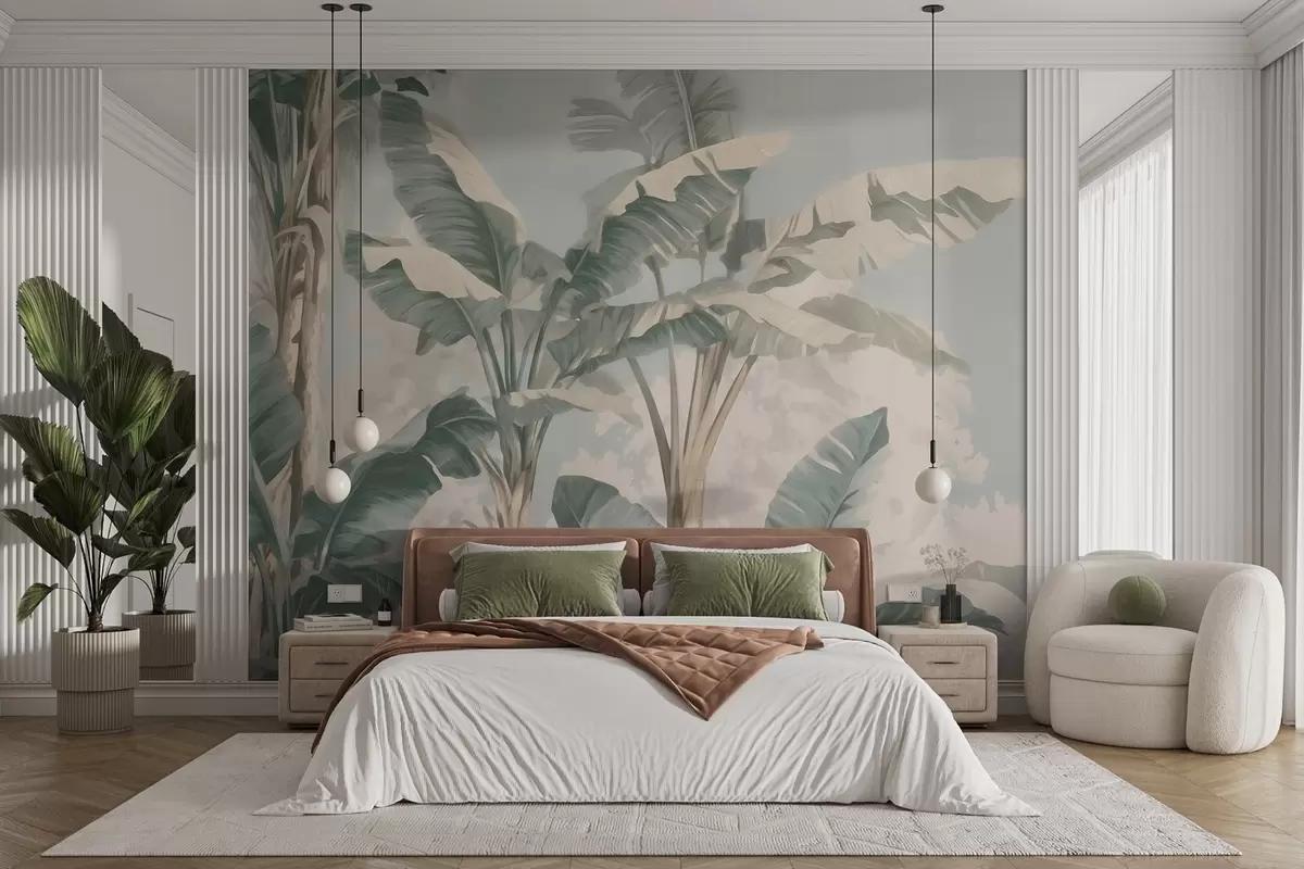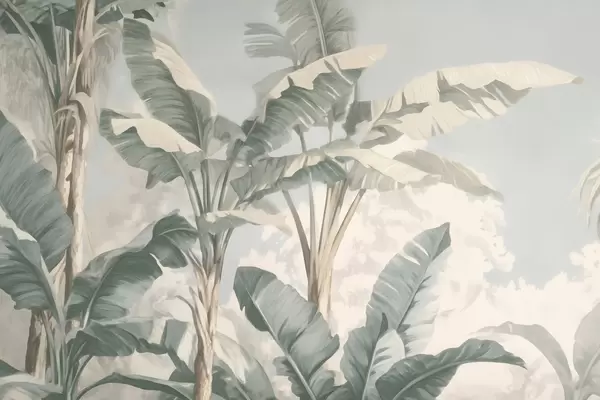 Tropical banana leaves in soft pastel tones - Wall mural (No. w09311)