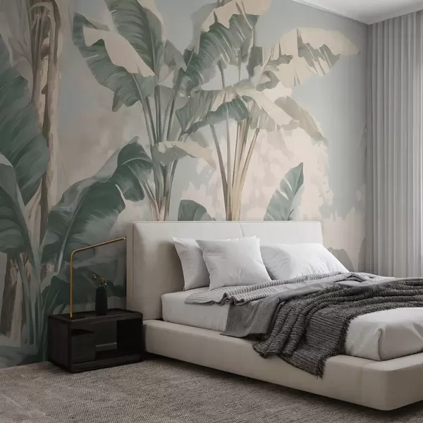 Tropical banana leaves in soft pastel tones - Wall mural (No. w09311)