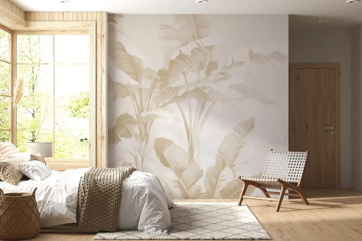 Tropical banana leaves in soft beige tones - Wall mural (No. w09311v2)