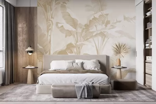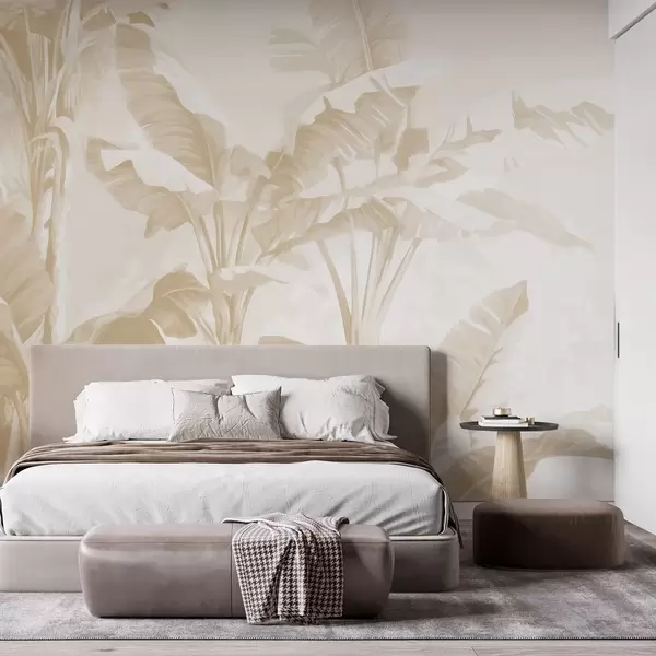 Tropical banana leaves in soft beige tones - Wall mural (No. w09311v2)