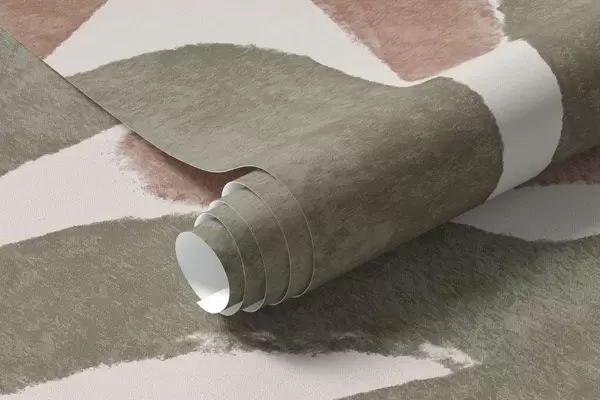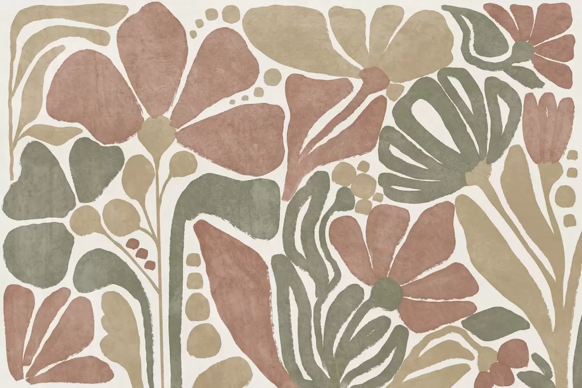 Abstract flowers in shades of red, green , and beige, with a light background, in a flat , stylized modern minimalist design - Wall mural (No. w09315)
