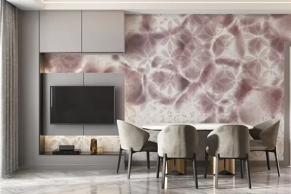 Abstract textured art with bordo floral print, faded and blurred effect, creating a soft and dreamy atmosphere - Wall mural (No. w09322v1)
