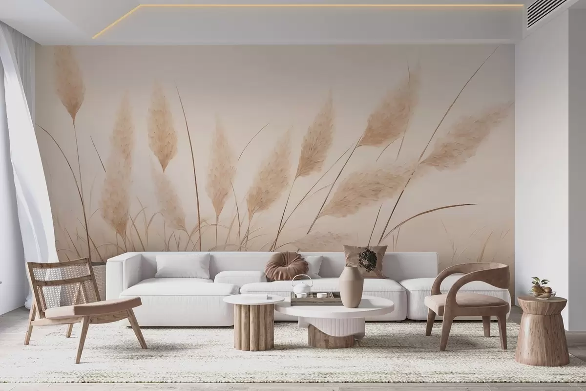 Soft beige pampas grass in the field - Wall mural (No. w09324)
