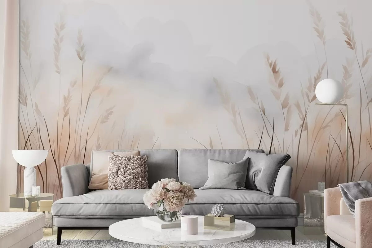 Grain ears in mist in soft beige and brown shades - Wall mural (No. w09327)