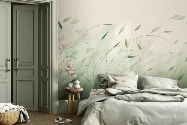 Green grass in the wind in watercolor style - Wall mural (No. w09331)