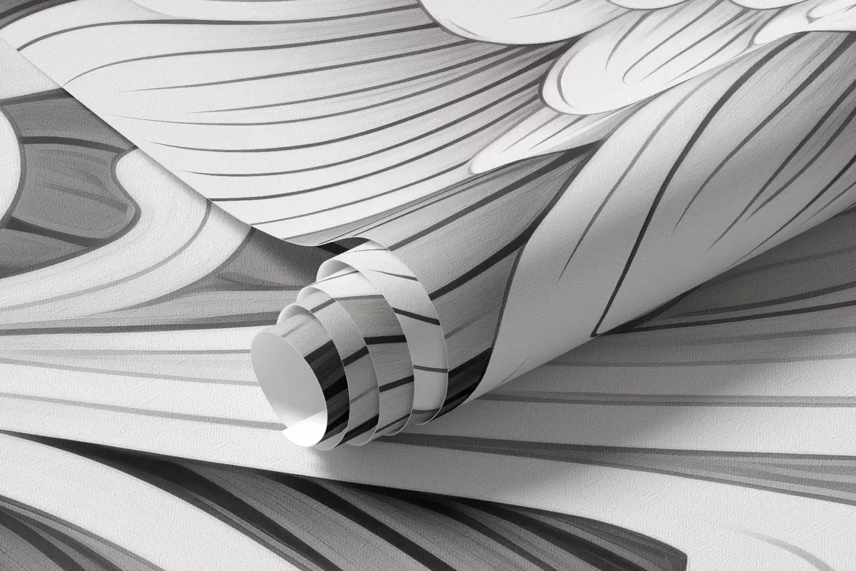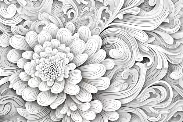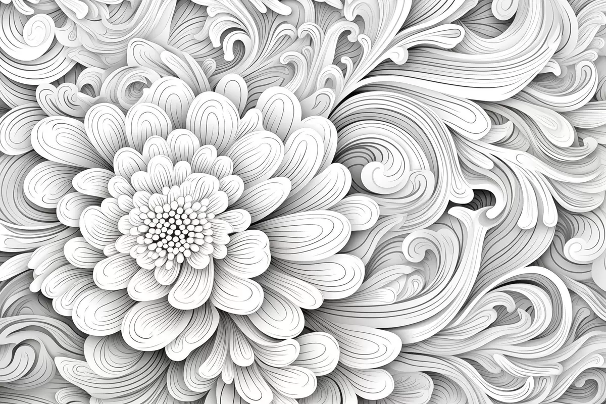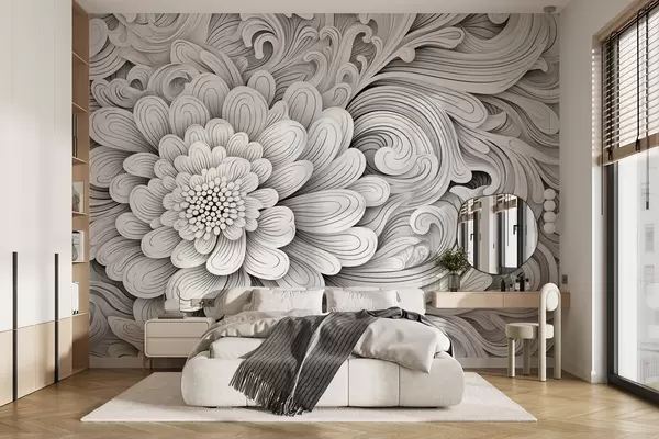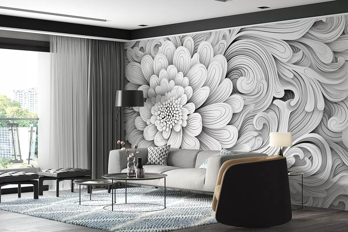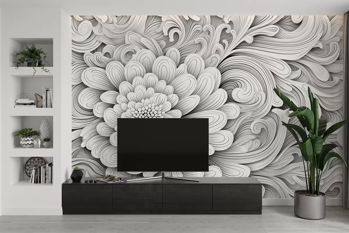 Decorative black and white pattern in the form of a flower and swirls - Wall mural (No. w09355)