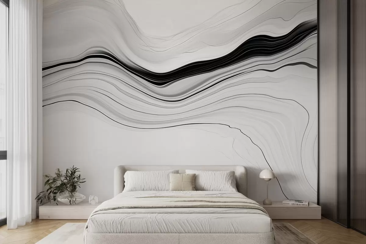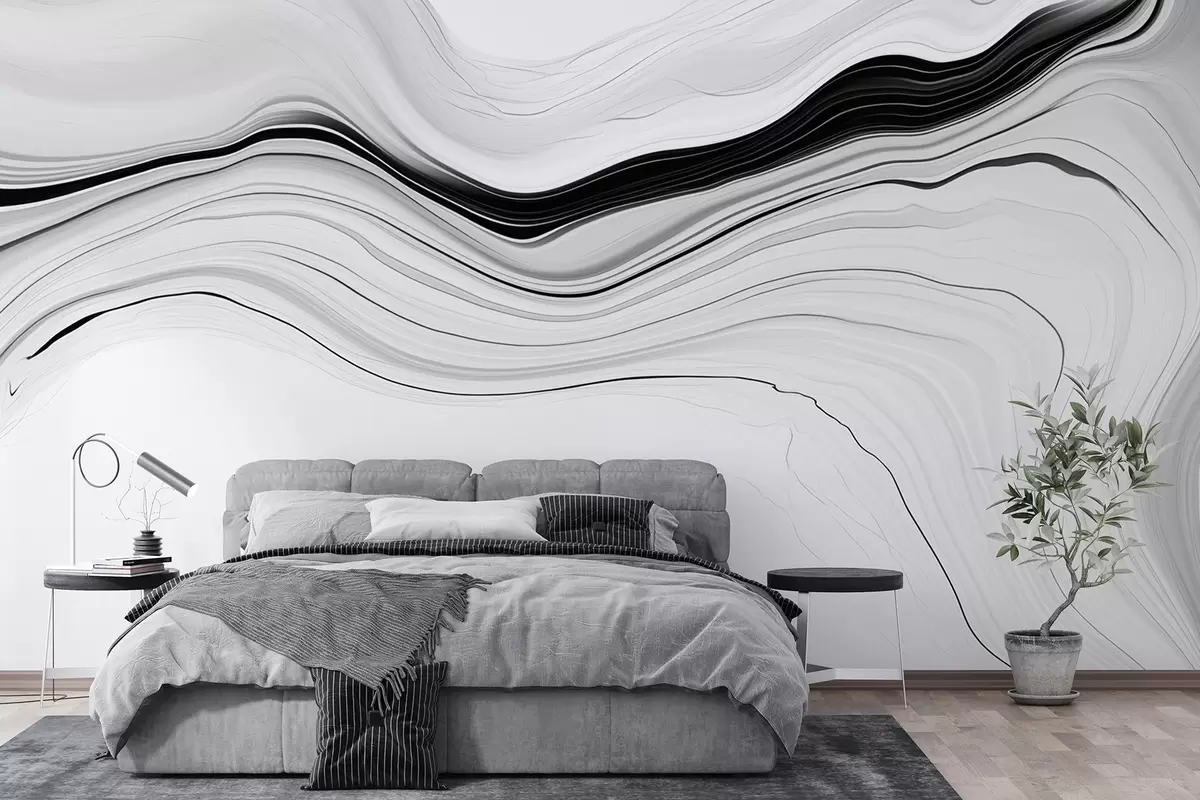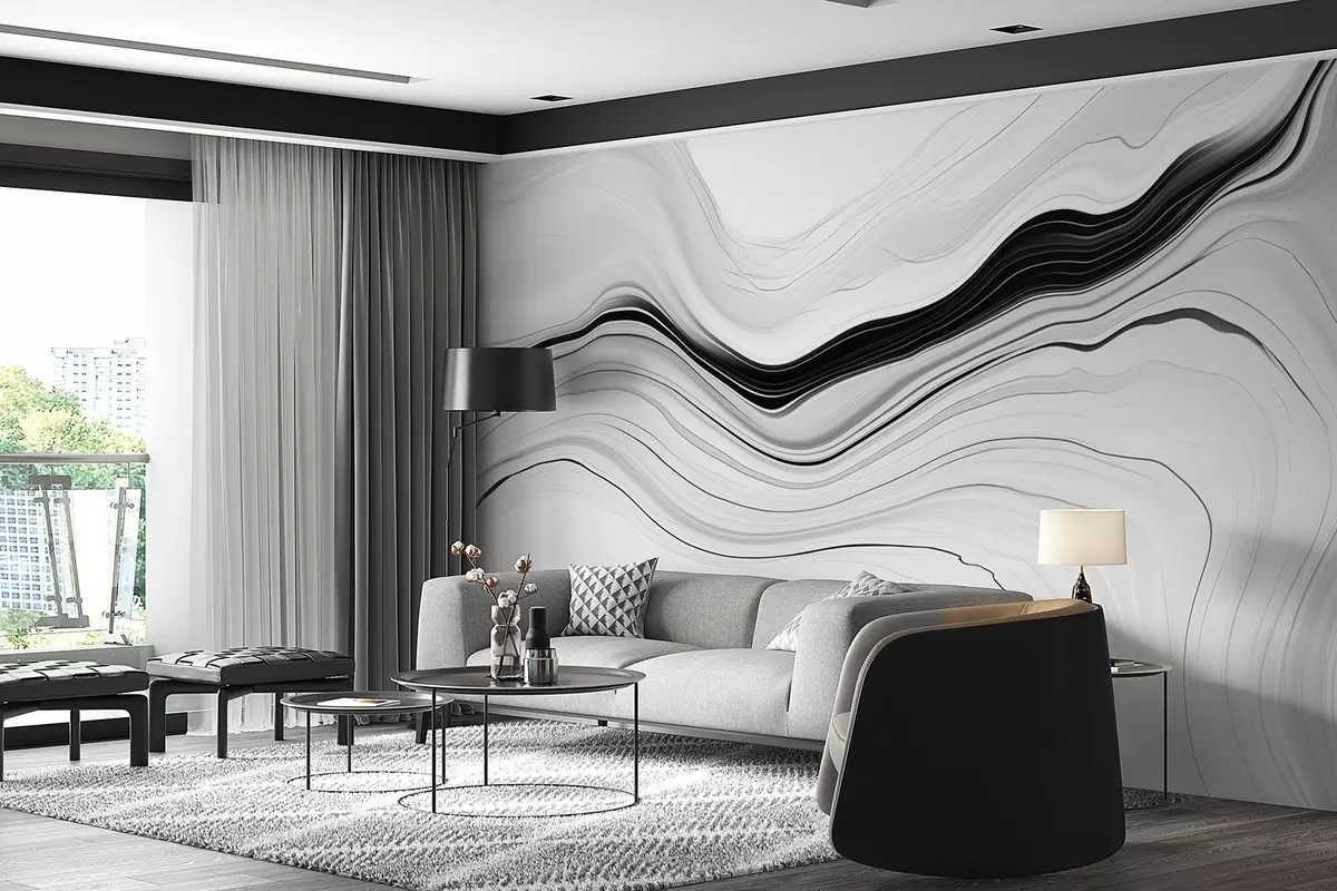 Black and white pattern with the effect of marble layers - Wall mural (No. w09358)