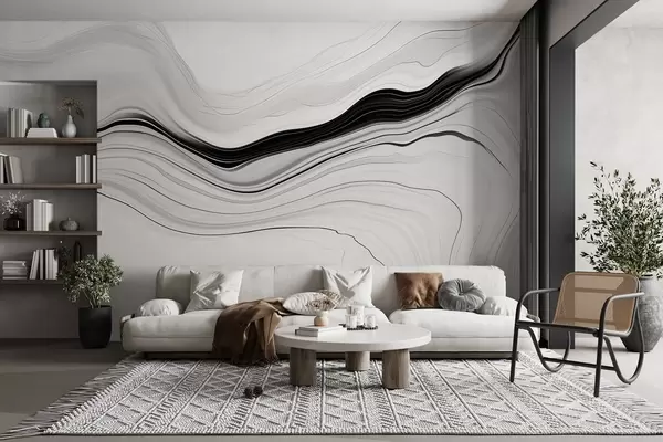 Black and white pattern with the effect of marble layers - Wall mural (No. w09358)