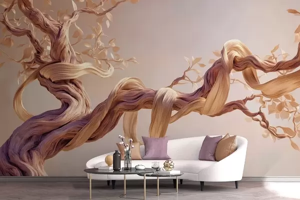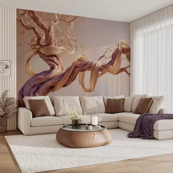 Twisted tree trunk with decorative leaves - Wall mural (No. w09360)