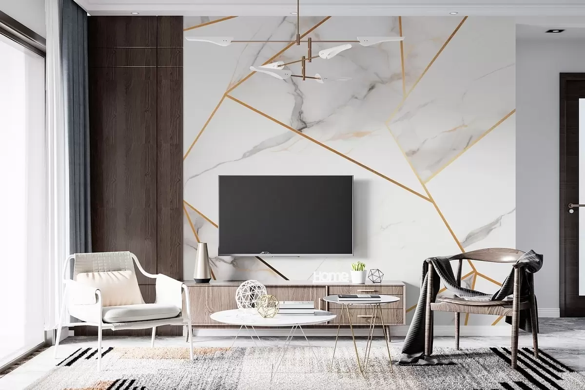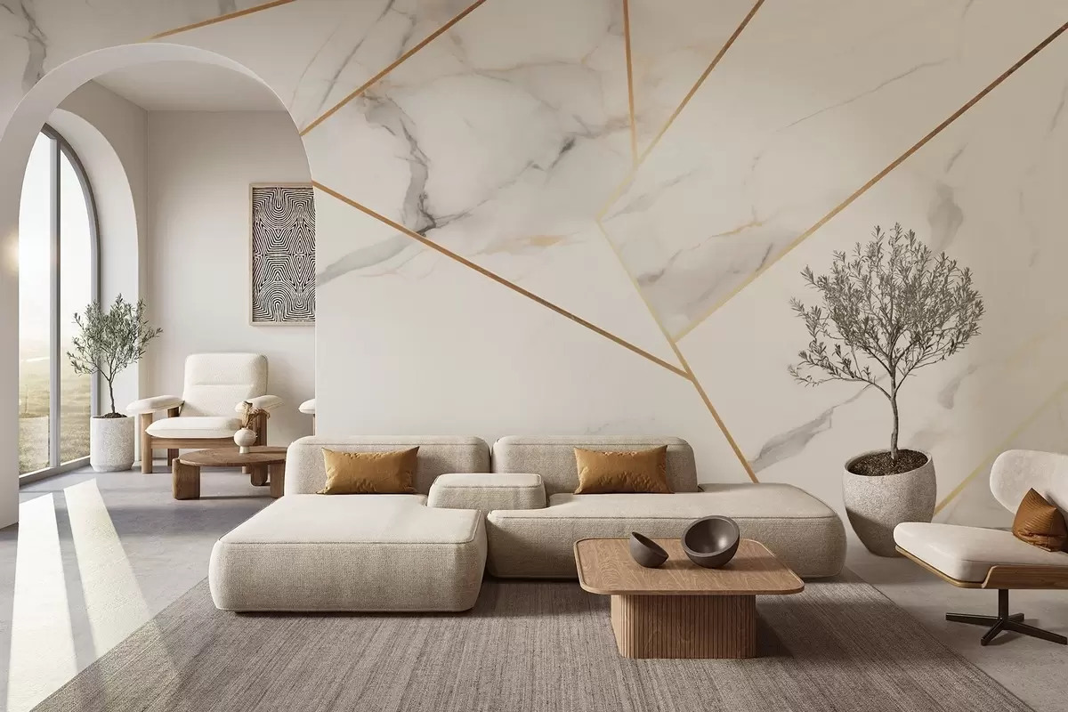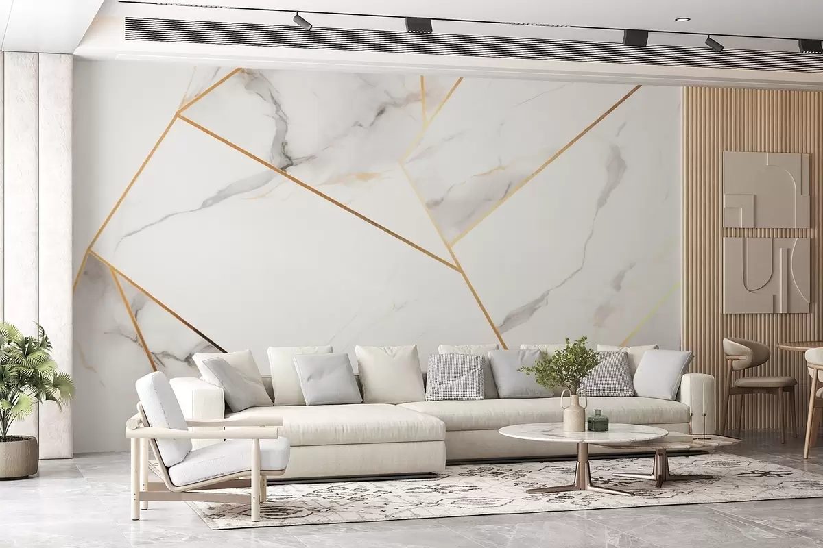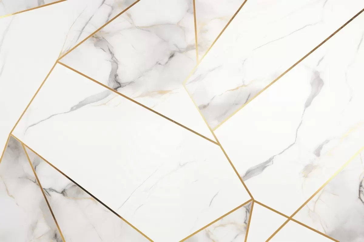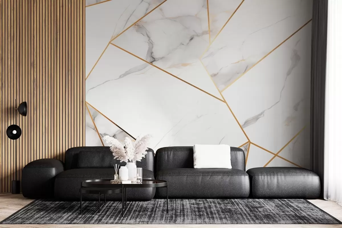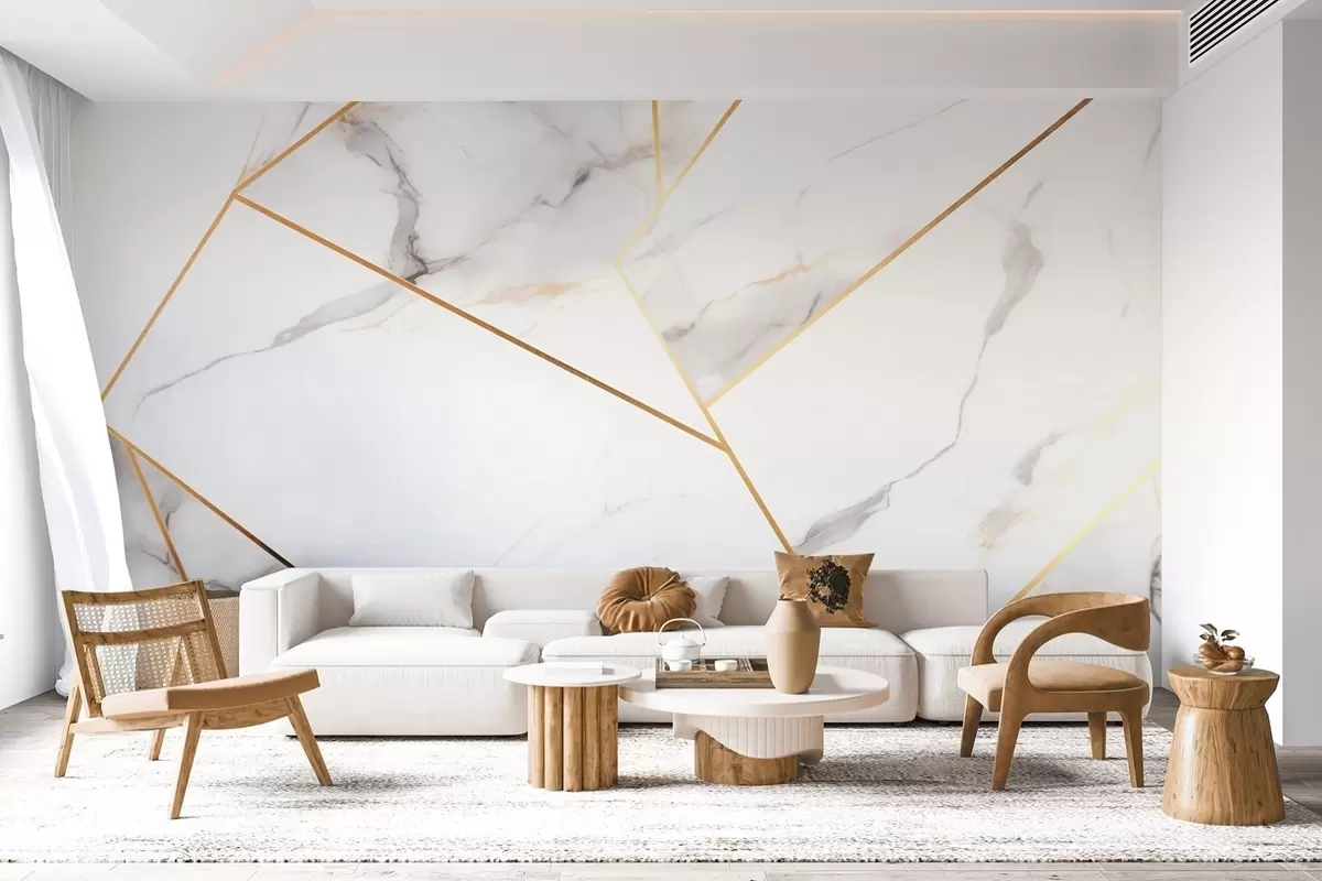Imitation of a marble surface with a yellow geometric pattern - Wall mural (No. w09363)