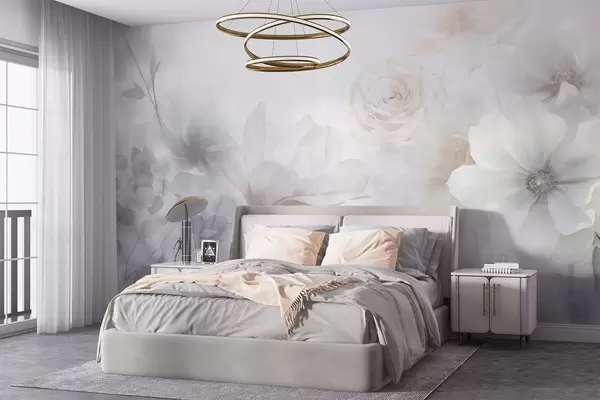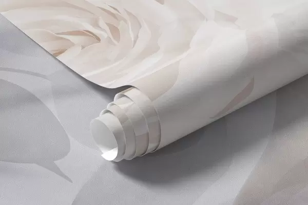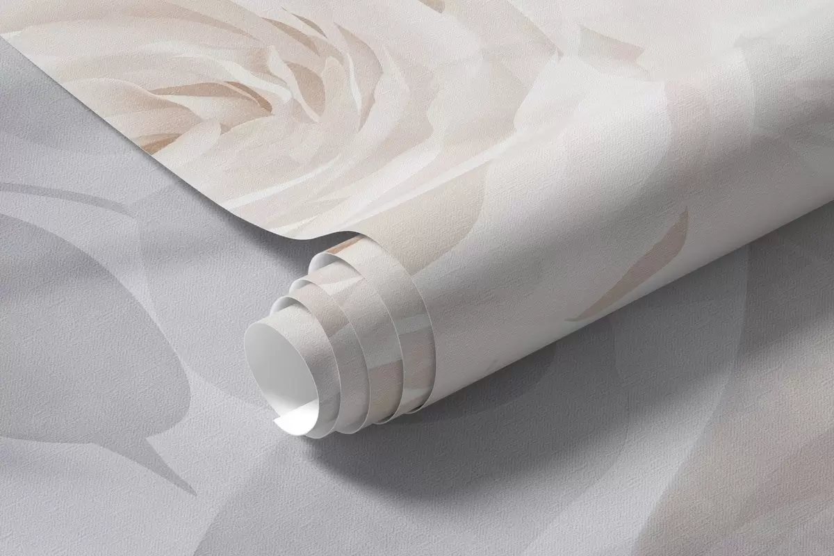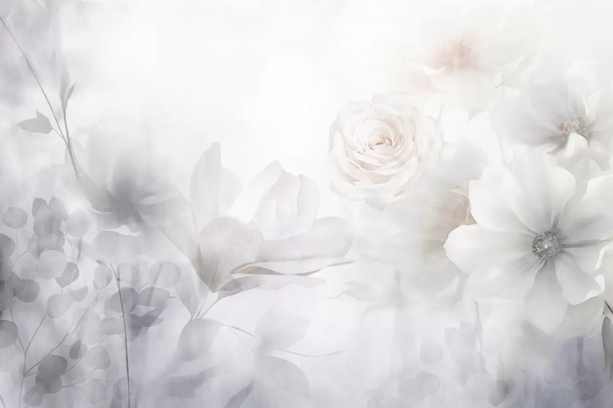 A delicate abstract floral arrangement with pastel pink roses and magnolias, soft focus, light gray background - Wall mural (No. w09371)