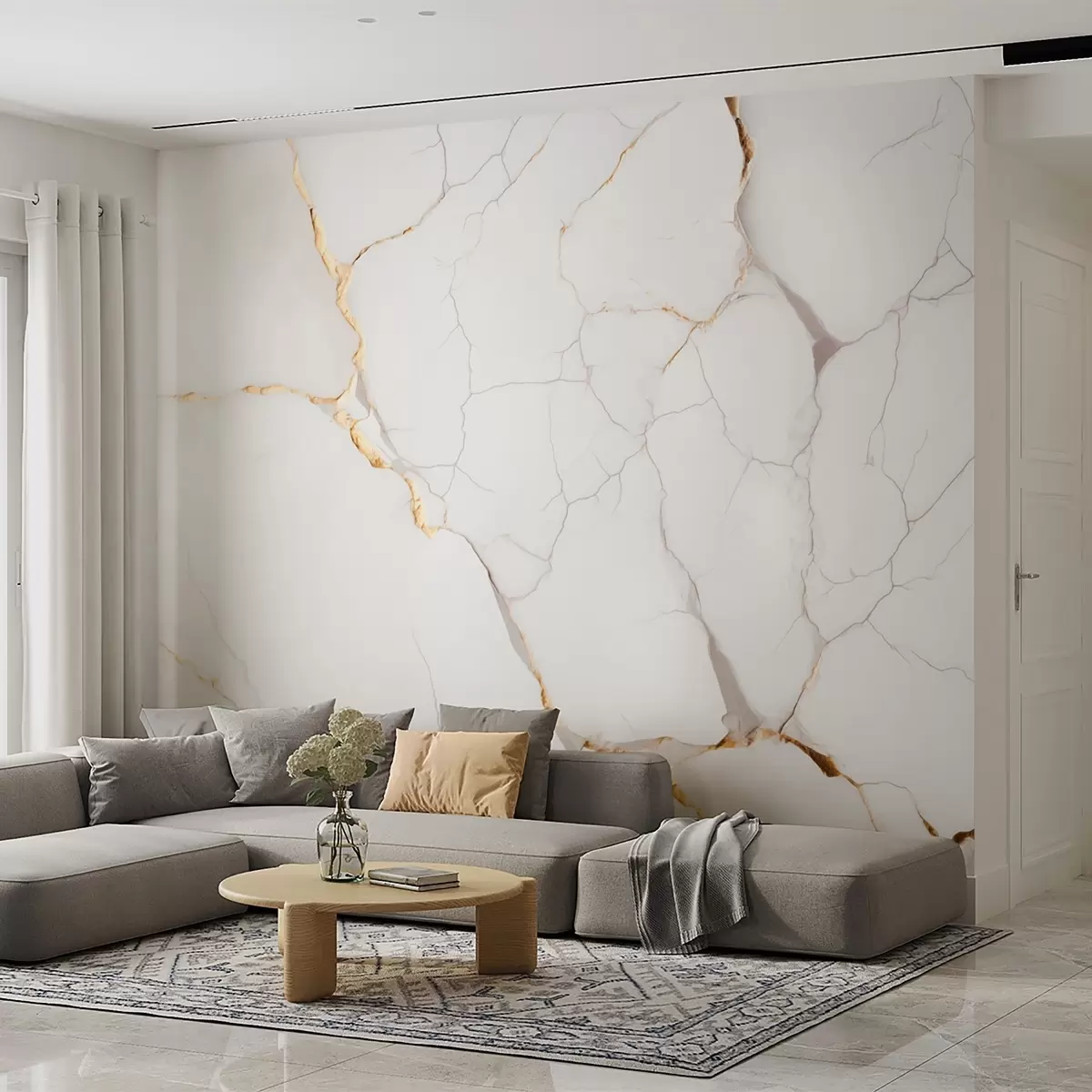 Imitation of marble with fine cracks and yellow veins - Wall mural (No. w09390)