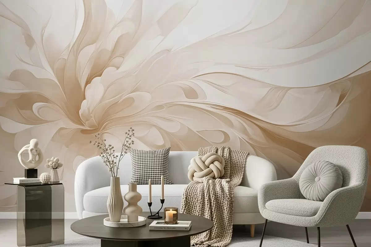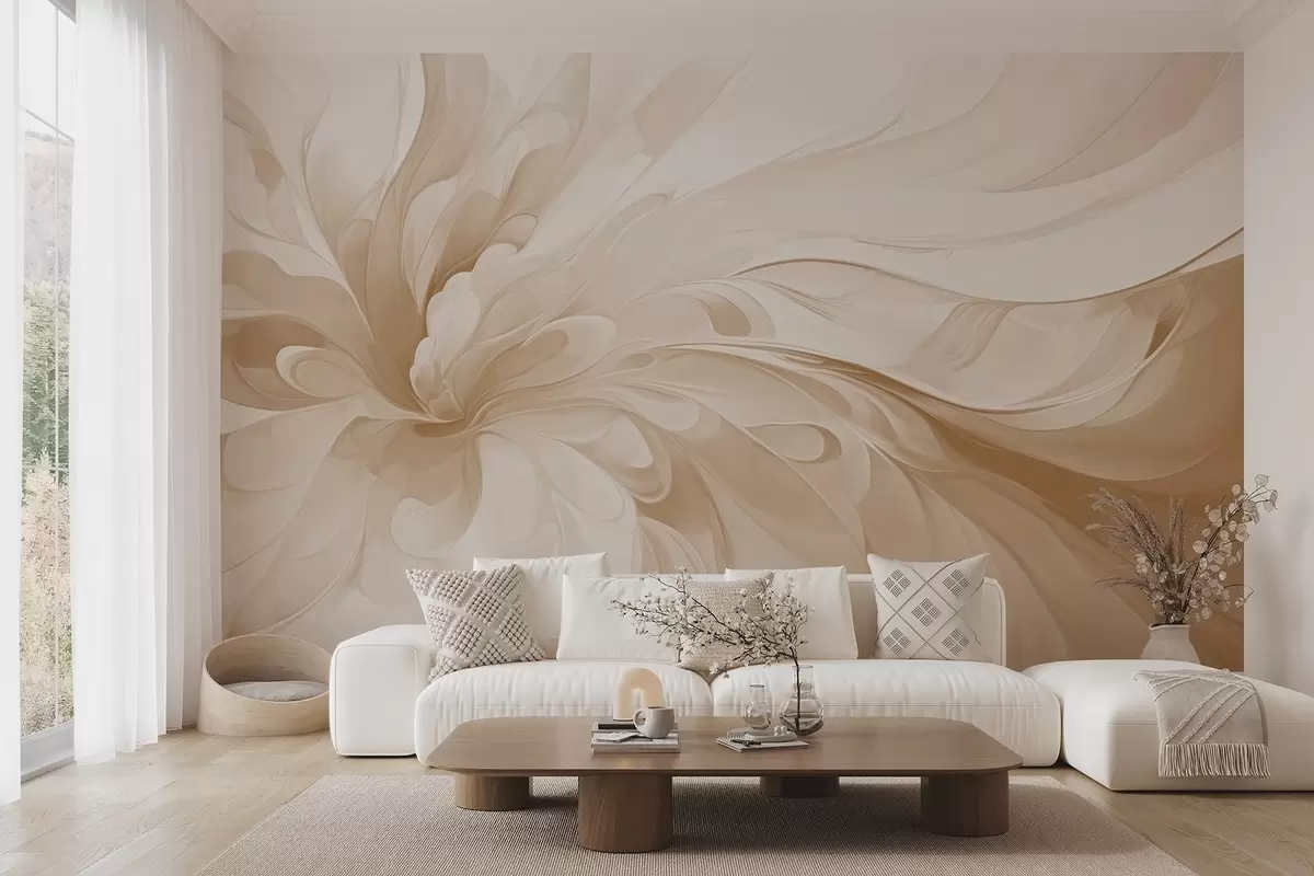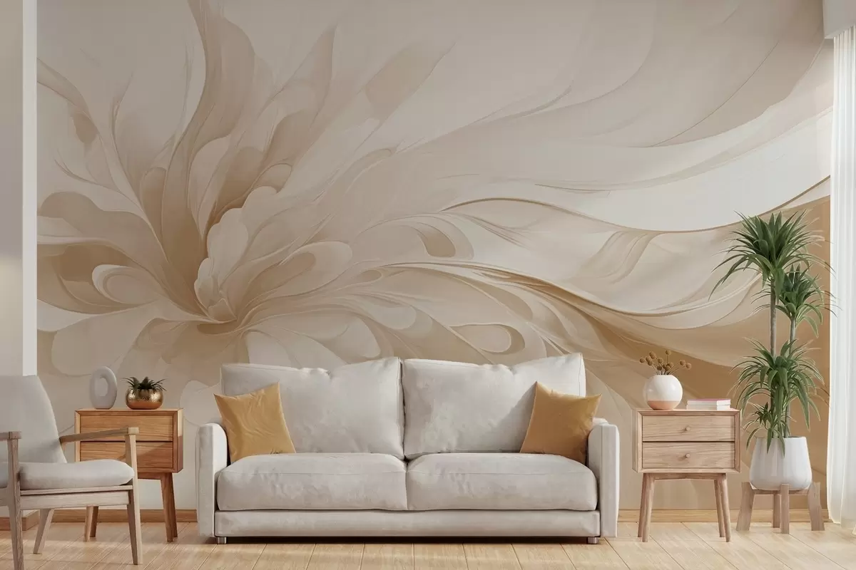 Gentle abstract swirl in beige tones - Wall mural (No. w09392v1)
